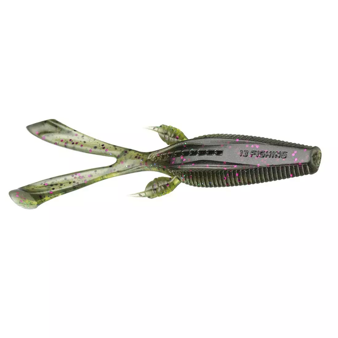 Wanna find those behemoth Bass? You need the 13 Fishing Invader Rabbit Ear Creature. Its streamlined body design is specifically fashioned to cut right through dense cover and get to those large Bass hiding out below. The rabbit ear tail design and ribbing along the body create a nice kicking motion mixed with a heightened vibration while it travels, encouraging Bass to strike. To kick it up another notch, 13 Fishing infused this bait with their Donkey Sauce attractant. The 13 Fishing Invader Rabbit Ear Creature will quickly become your go-to for punching bait!