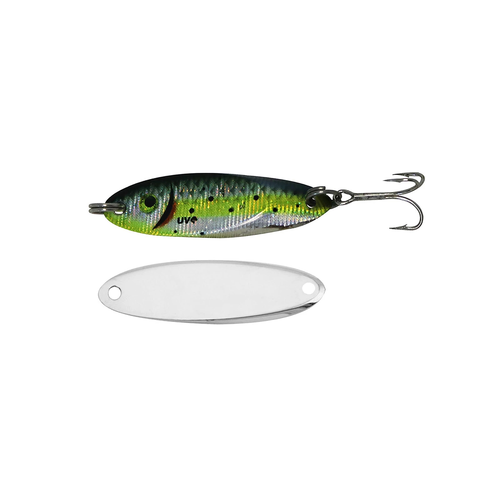 Acme Baitfish Kastmasters offer realistic fish skin finishes to entice more fish. These lures produce a wild action without twisting your line. The aerodynamic design makes them great for casting long distances. Baitfish Kastmasters are precision-machined and built tough, so they won’t break, bend, or corrode.