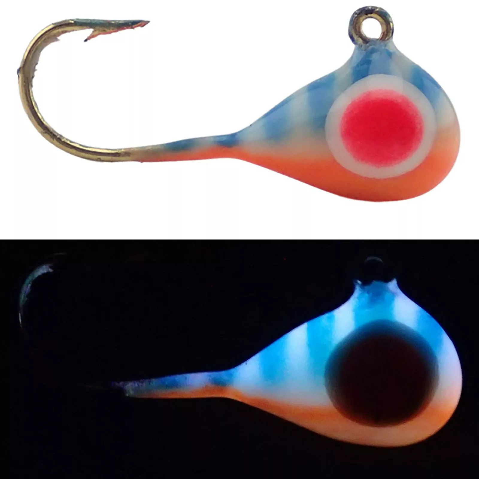 ADK Custom Jigs Cuse Tungsten Jigs glow blue and orange like the colors of the shortened moniker of its apparent collegiate namesake. The hand-painted glow-colored ice fishing jigs light up your bait in winning style. Panfish fans like crappie, perch, and bluegill pay a deadly game-time fee when they hit, as does the occasional trout, bass, and other larger predators.