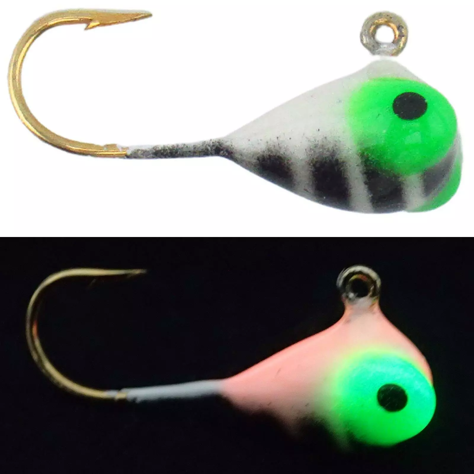 ADK Custom Jigs Hell Boy Tungsten Jigs pop in the water under the ice with stubby, googly eyes, and a hand-painted glow intensity that brings fish to your bait! Primarily used to catch perch, crappie, and bluegills, don’t be surprised if larger game fish bite down on the Hell Boy Tungsten Jig, too.