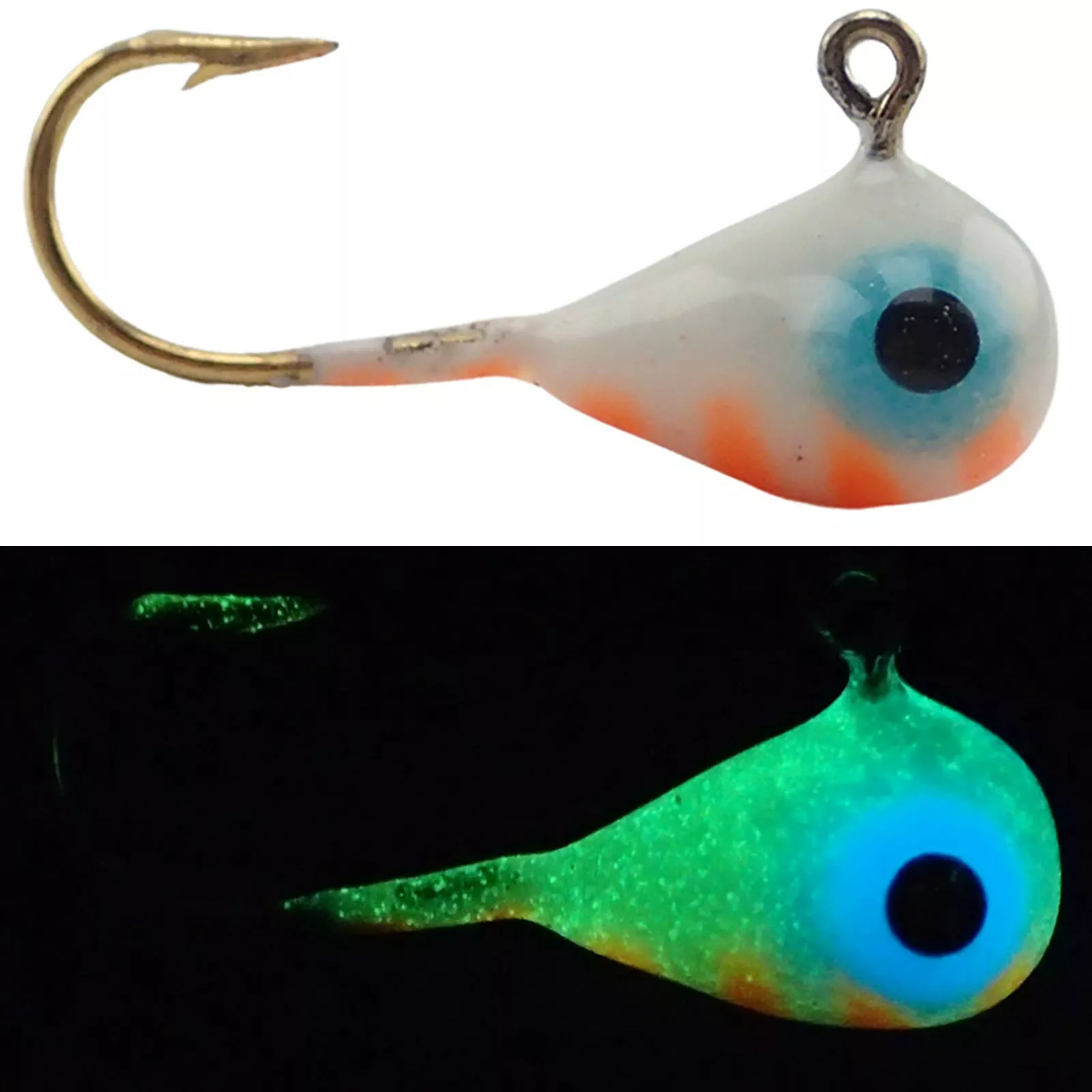 These custom tungsten ice fishing jigs drop quickly and straight, and ADK Orange Crush Jigs allow your bait to spend more time in the strike zone. ADK states it uses top-of-the-line Aberdeen jig hooks and ensures to clean the jig’s eyelets before they leave the door. Bulging eyes glow brightly. The craftsmanship is obvious when you get these jigs in your hands! Rig up your soft plastic bait and you’ll smash all fish that find your bait with ADK Custom Jigs Orange Crush Tungsten Jigs!