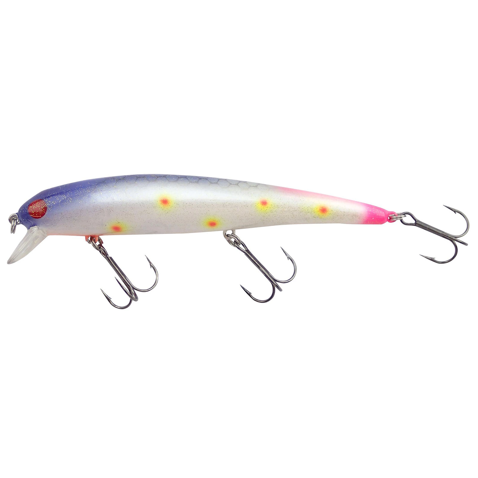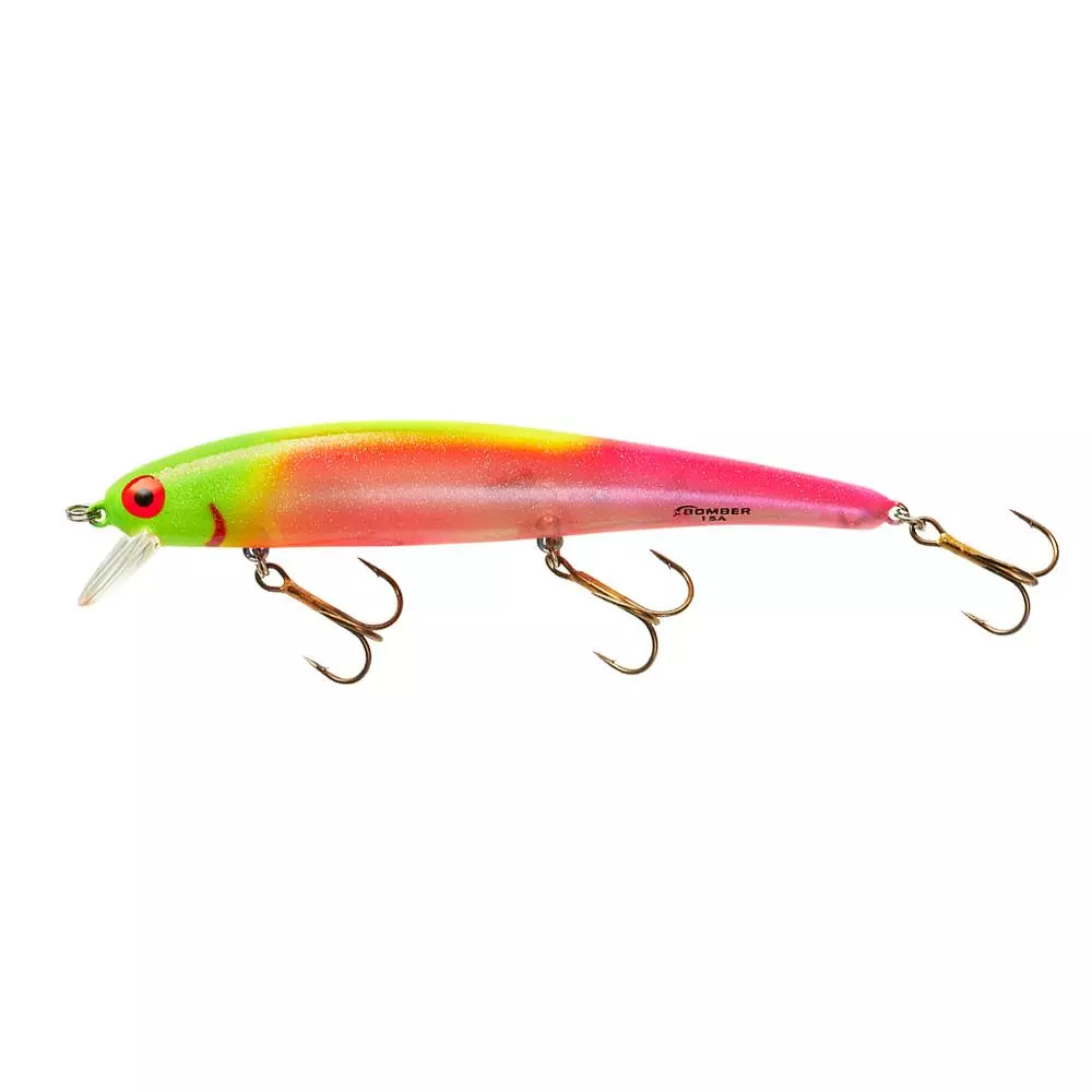 The Bomber Long A Lure features a trademark tight wiggle and rolling movements that mimic live bait. The slender jerkbait is highly versatile and can be fished many ways. You can troll for walleye or salmon, and use it behind a downrigger to target deeper-residing fish. Use a twitching technique for bass or cast, and retrieve with a slow pace for trout and other species. Molded out of high-strength polycarbonate, it can withstand many attacks. Its internal rattle helps pull fish out of their hiding places to investigate. The small lip of the Long A Lure gives it added strength and true-running performance. For an all-around effective hard bait, the Bomber Long A Lure is the best on the market today.