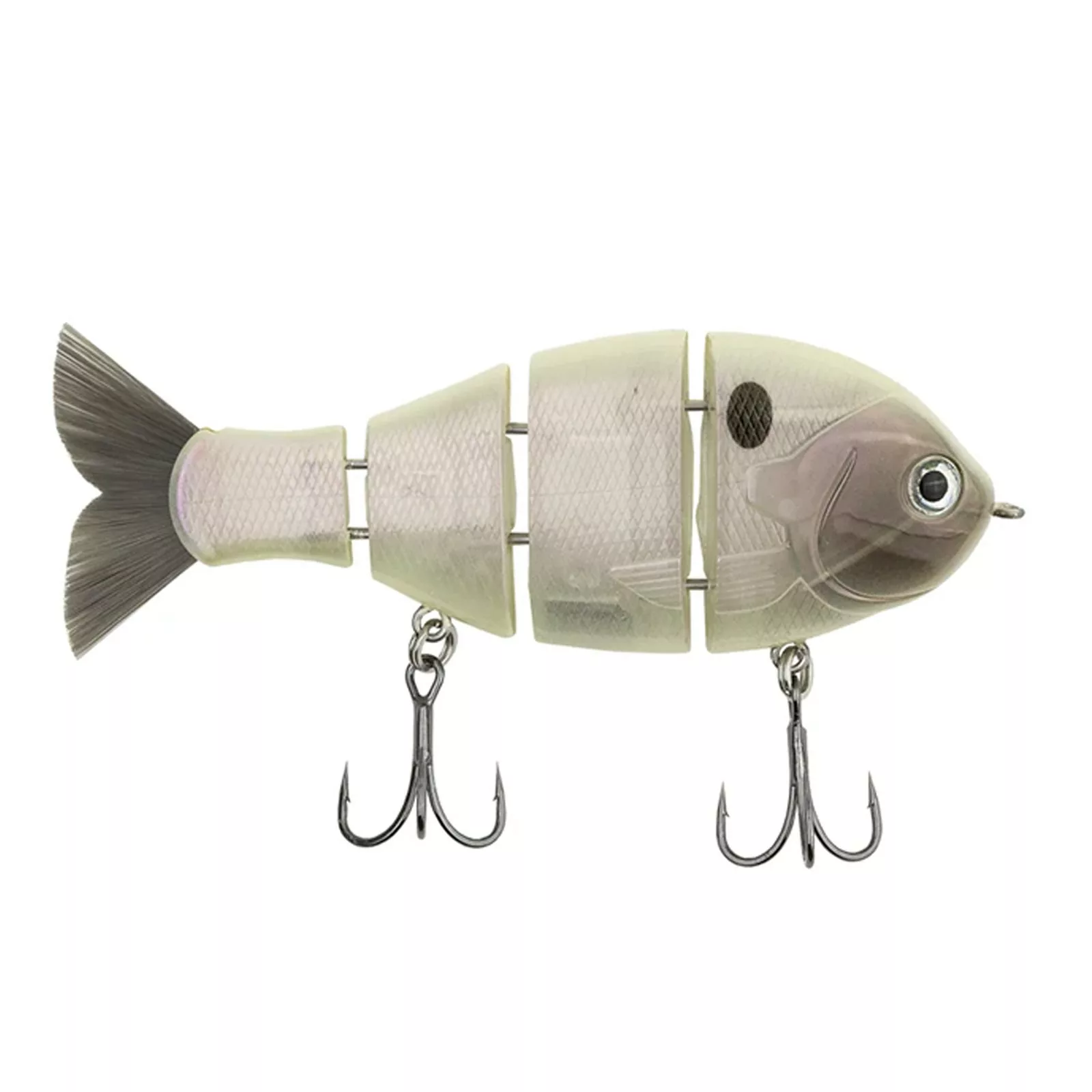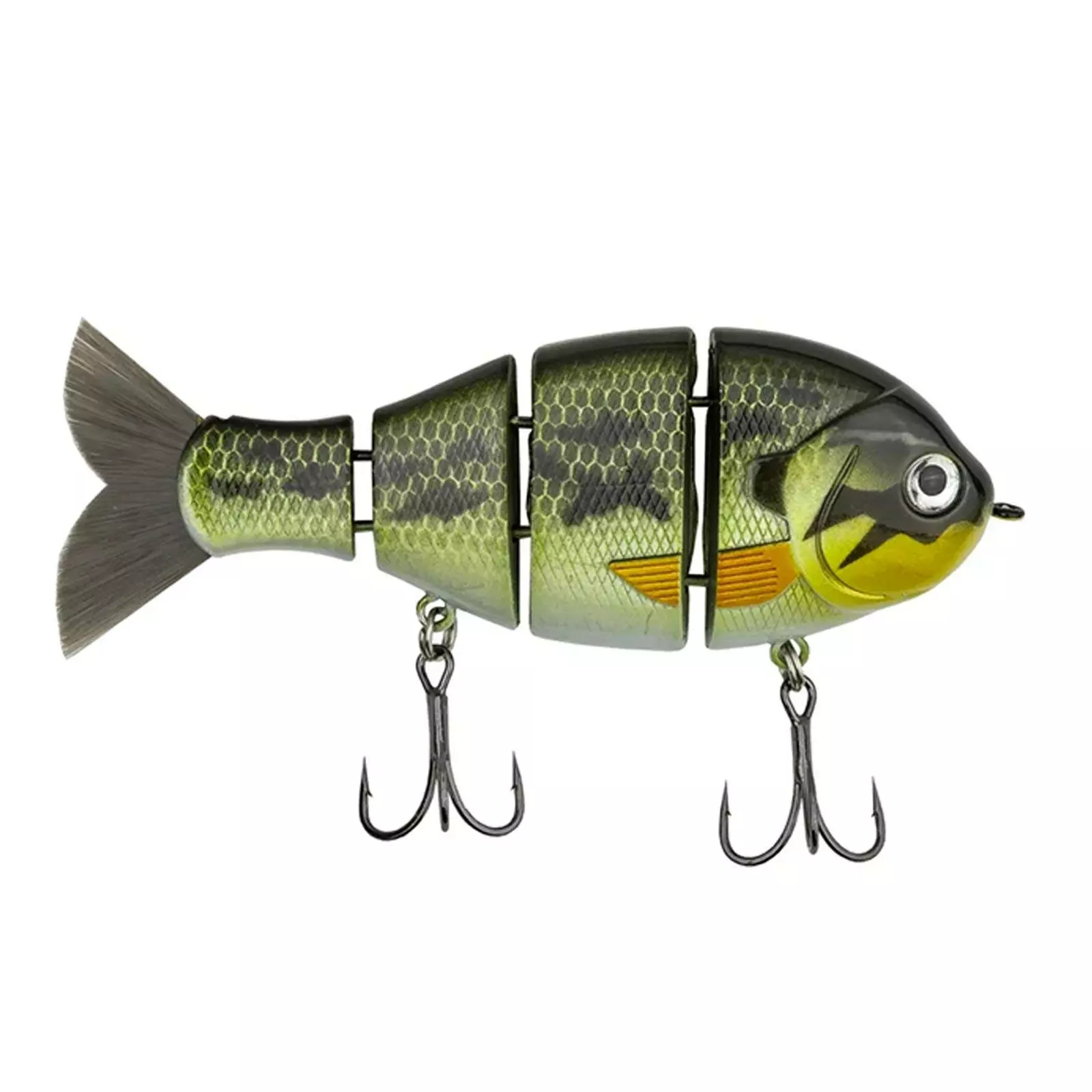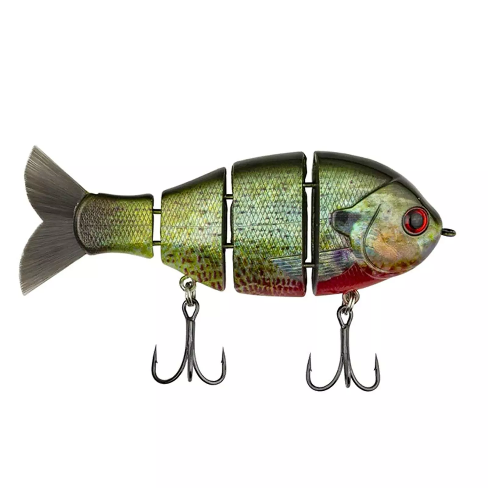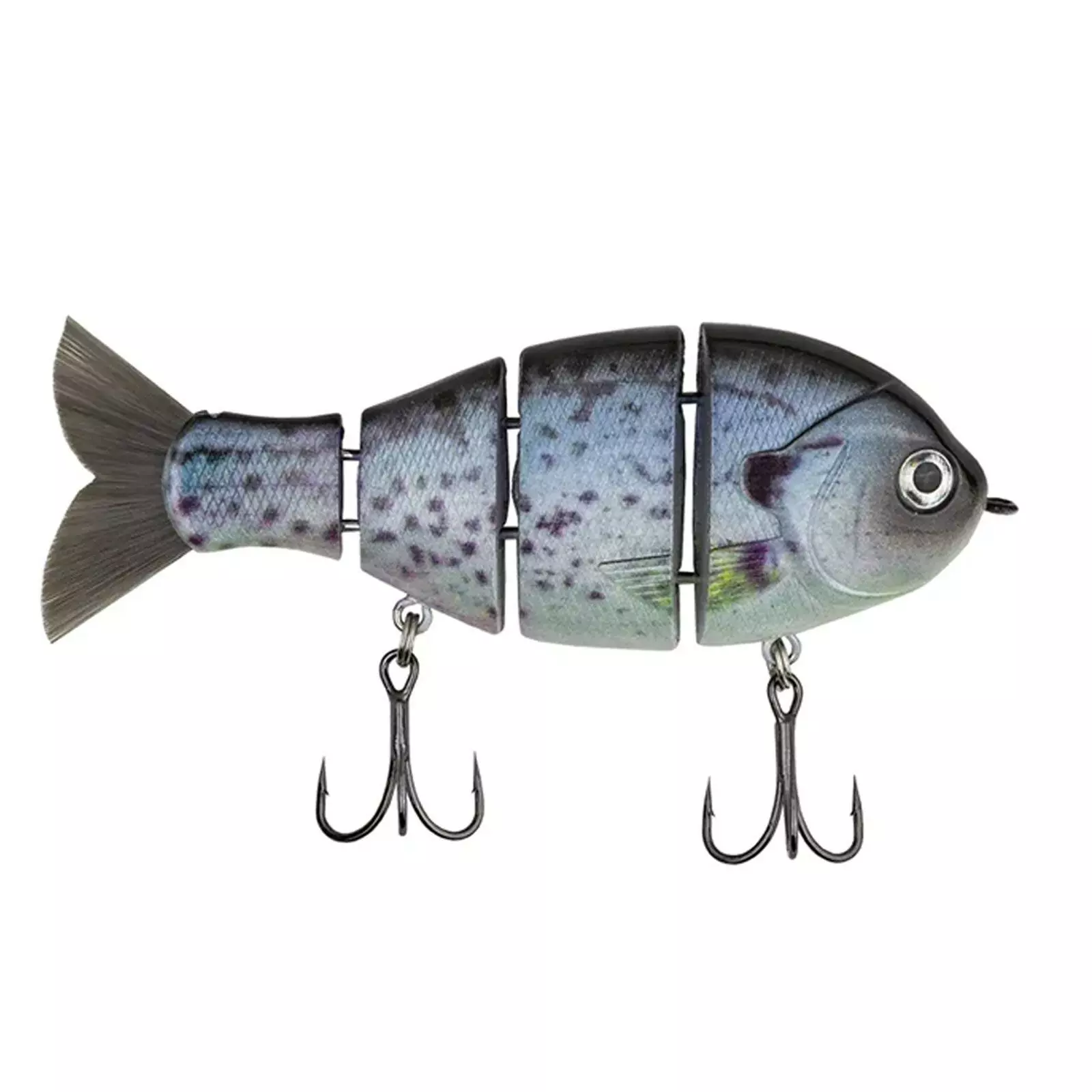 The Catch Co Mike Bucca’s Baby Bull Gill Swimbait can find the bass and pike that bend your fishing rod! Ideal to use where big predators find panfish tasty, too, the 3 3/4 inch multi-jointed swimbait is slow-sinking, weighs a mere 3/4 of an ounce, and is formed from ABS plastic and painted with six tantalizing color patterns to imitate sunfish, crappie, bluegill, and shad. Of course, colors and the bluegill profile are only part of the story as a swimbait movement is vital. The Baby Bull Gill Swimbait displays loads of action in the water to attract the bigger fish. To work the Catch Co Mike Bucca Baby Bull Gill, use a medium to medium-heavy casting or spinning rod and wind steadily to swim it 2-5 feet beneath the surface. The swimbait moves with an “S” motion. A faster retrieval tightens the action and raises the bluegill swimbait toward the water’s surface, mimicking a distressed baitfish. If panfish are on the menu, bet that the Catch Co Mike Bucca’s Baby Bull Gill Swimbait will find the bigger fish!