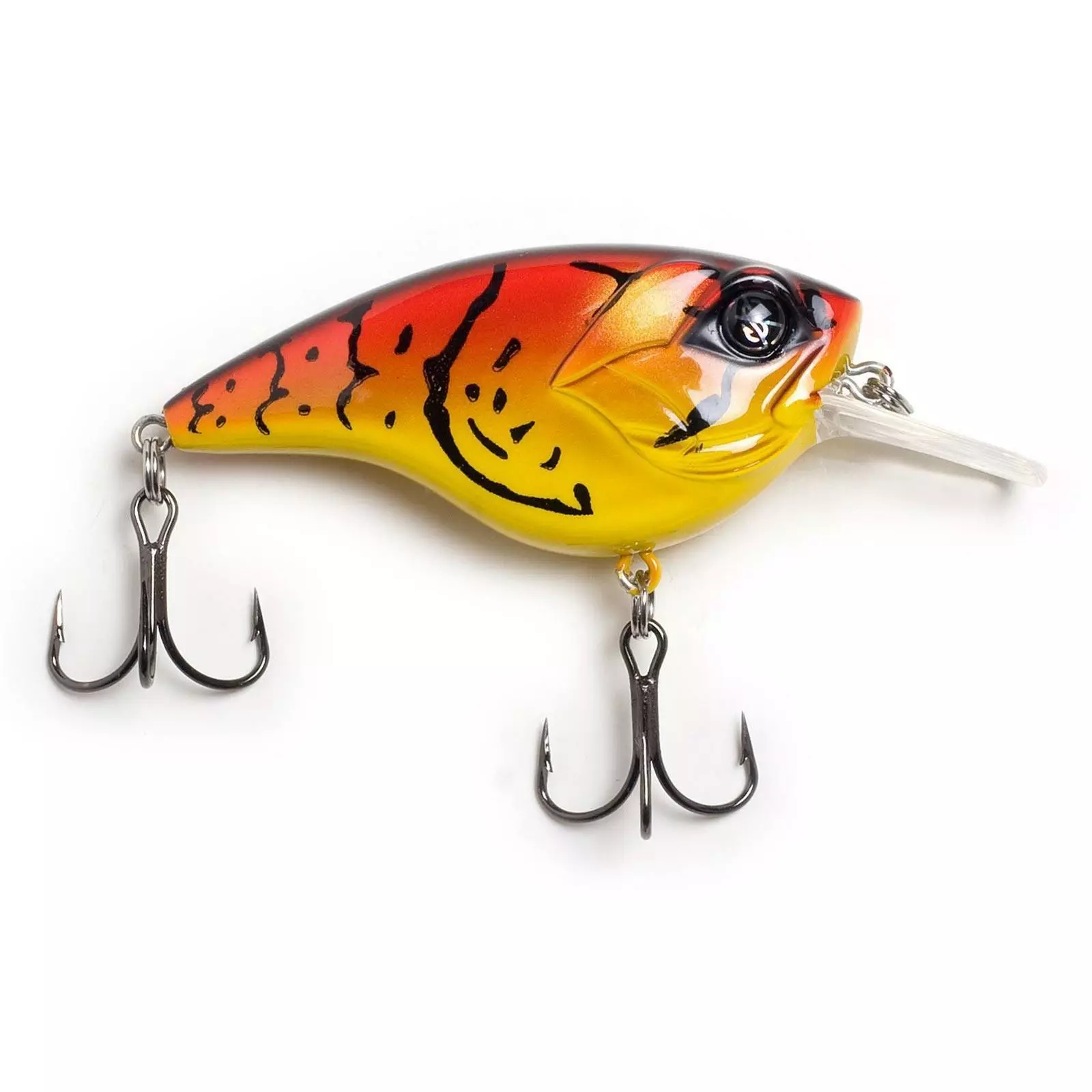 The Googan Squad Flat Banger Crankbait is a bass lure with a square bill that allows you to present a more aggressive, wider wobble than you can get when fishing with most other flat-sided crankbaits. Designed to be fished around rock, wood, docks, bridge pilings, and other hardcover hangouts, its square bill easily deflects off cover to trigger bass strikes. The action and rattles draw predators out from along the edges of weed beds, so don’t hesitate to try it in open water, too. You’ll see the 3 – 6 ft. diving depth painted on the bottom for quick identification. The Googan Squad crankbait is ideal in cool waters and where pressured fish act cautiously. This flat-sided square bill crankbait comes in fish-catching proven colors and with Mustad Triple Grip hooks that secure hookups. When other cranks in your tackle box fail to deliver, reach for this Googan Squad Flat Banger Crankbait and its unique swimming action to trigger strikes!