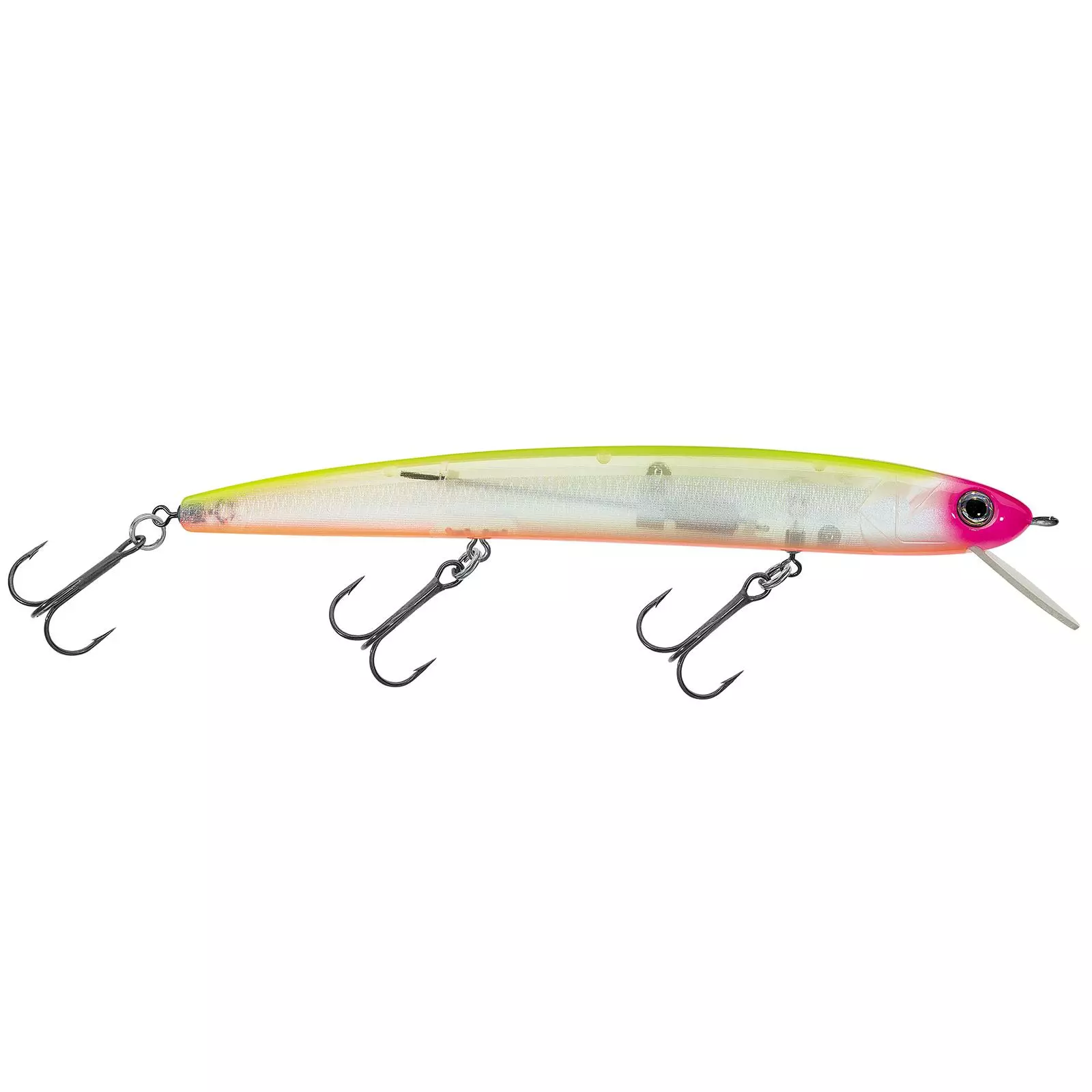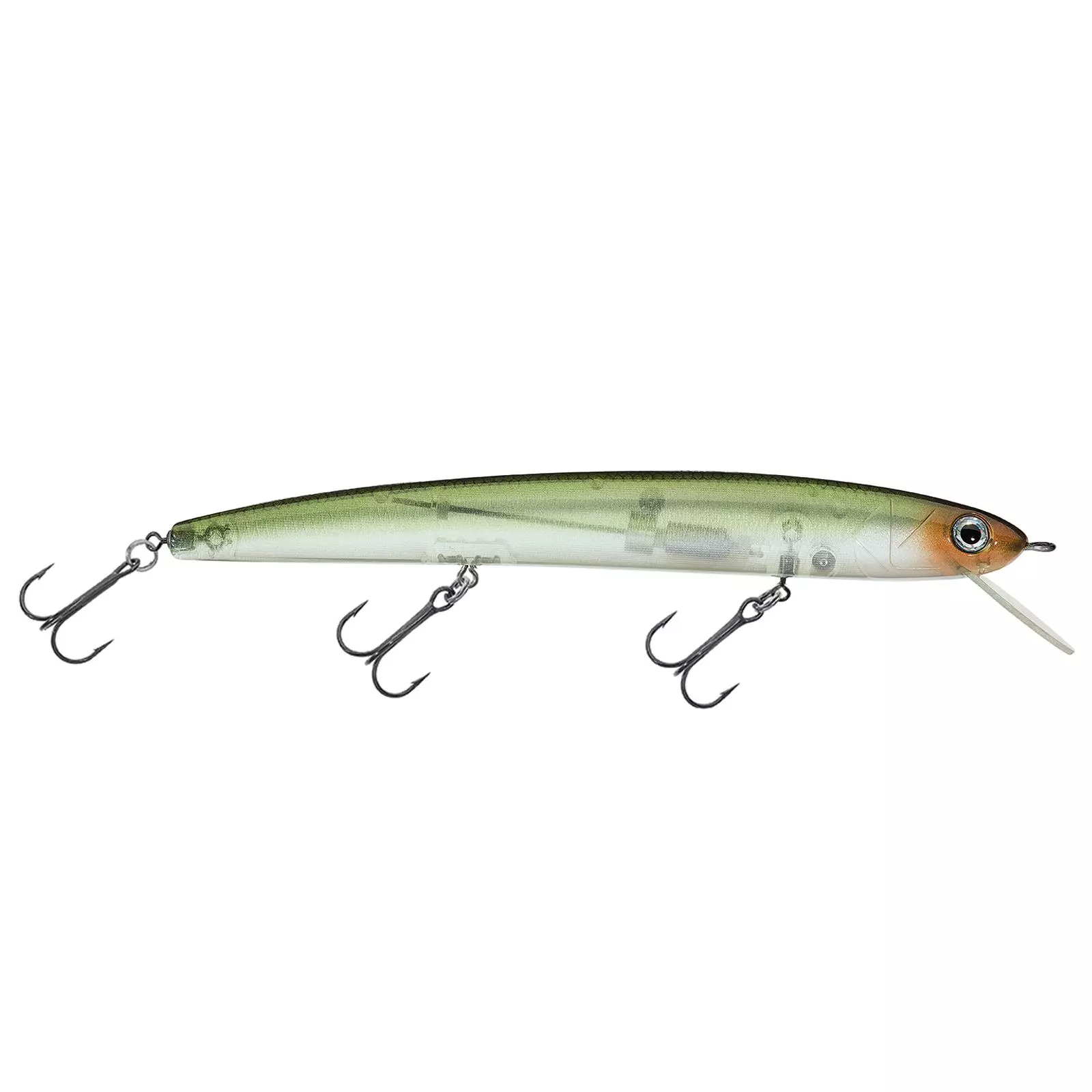 The HMKL Minnow Steez Stickbait features a simple-to-the-eye design, but much thought went into its making. Based on the universal minnow profile, the Steez Minnow Stickbait is significantly lean under the belief that leaner lures are more effective than robust stickbaits in tough fishing situations. For its thinner design to work, HMKL crafted a bait with a tungsten-weighted SaqSas weight-transfer system. The small tungsten weights enable a balanced bait presentation underwater, while an internal counter-buoyancy weight stabilizes the Minnow Steez without unnecessary noise. A first-of-its-kind circuit-board carbon-fiber bill on a jerkbait won’t chip and acts like a boat rudder on the HMKL. The circuit-board bill cuts the water very accurately and gets the bait where it needs to be. When fish strike, SaqSas swivels on the front and rear split rings, allowing treble hooks to spin freely and preventing tearing and losing the fish. The design also features a magnet silent-transfer system that aids long casts. Available in predator-provoking hues, the silent, slim-bodied HMKL Minnow Steez Stickbait should be a winner in your tackle box!