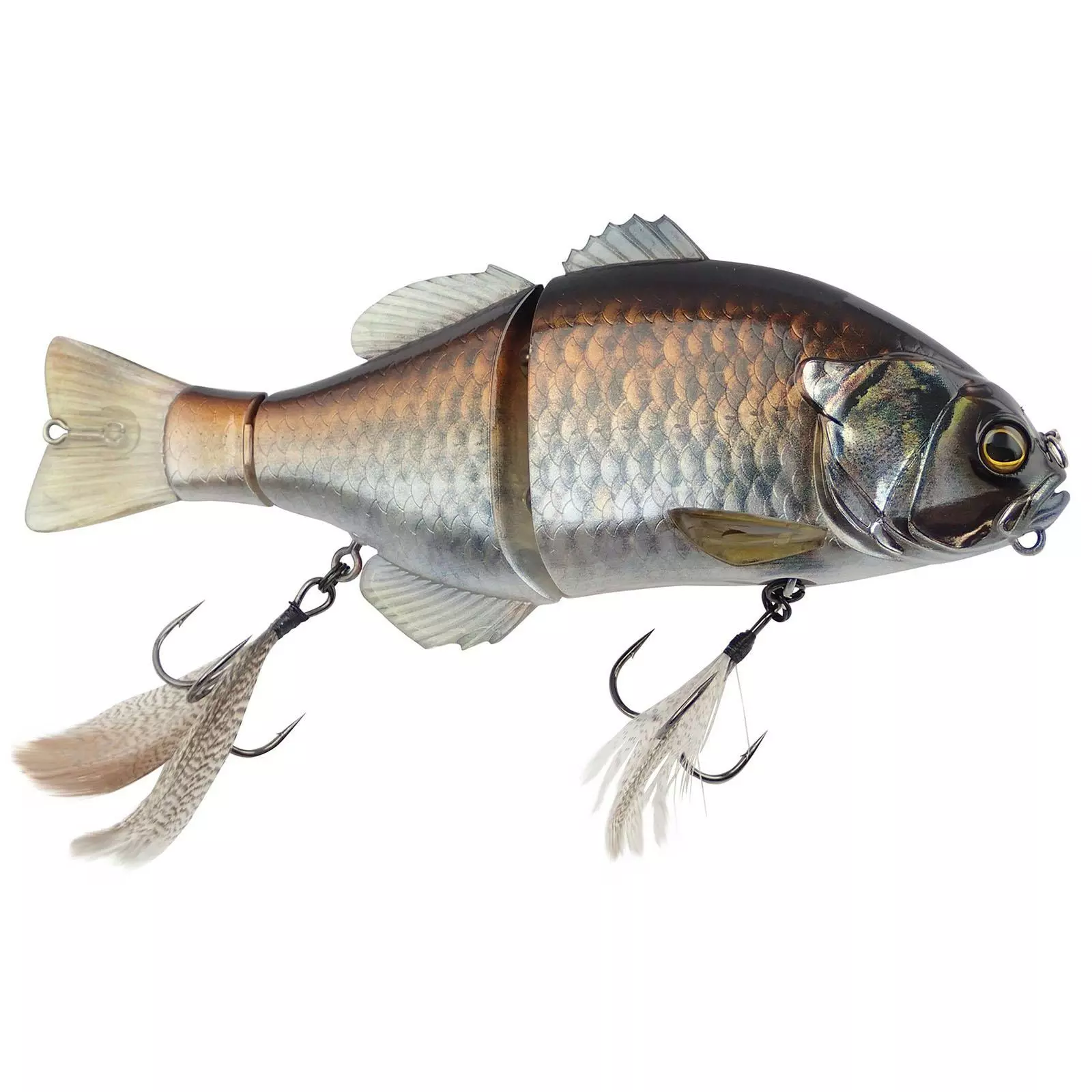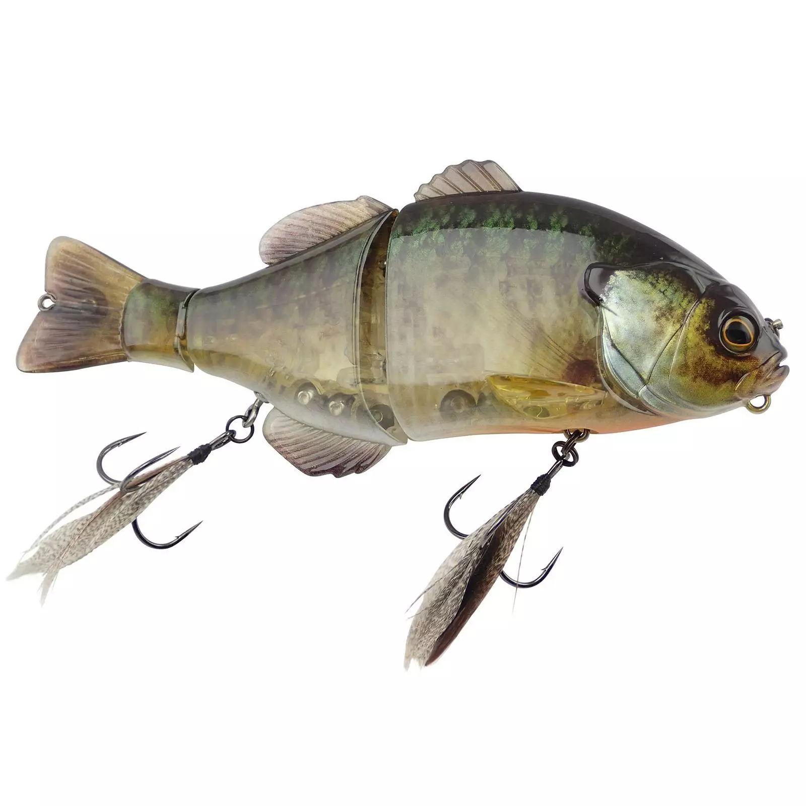 Where there are bluegills, bass are sure to strike! Fish the Jackall Gantarel big bluegill bait near cover and you won’t have to wait long for a bite. The Gantarel features a jointed body, so it swims naturally, in an S-shaped motion. This slow floating lure enables you to avoid snags because it will float up to the surface when stopped. Float it next to a structure to trigger aggressive bites! Just a twitch of your rod will make this bluegill imitator take a quick, 180-degrees turn. Equipped with swiveling feathered hooks, bass won’t notice the hidden hooks and won’t be able to throw the lure like others. With multiple line tie options, you can freely customize or fish it many ways. Finished with an incredibly realistic paint job, bass will be surprised when they’re hooked up with the Jackall Gantarel.