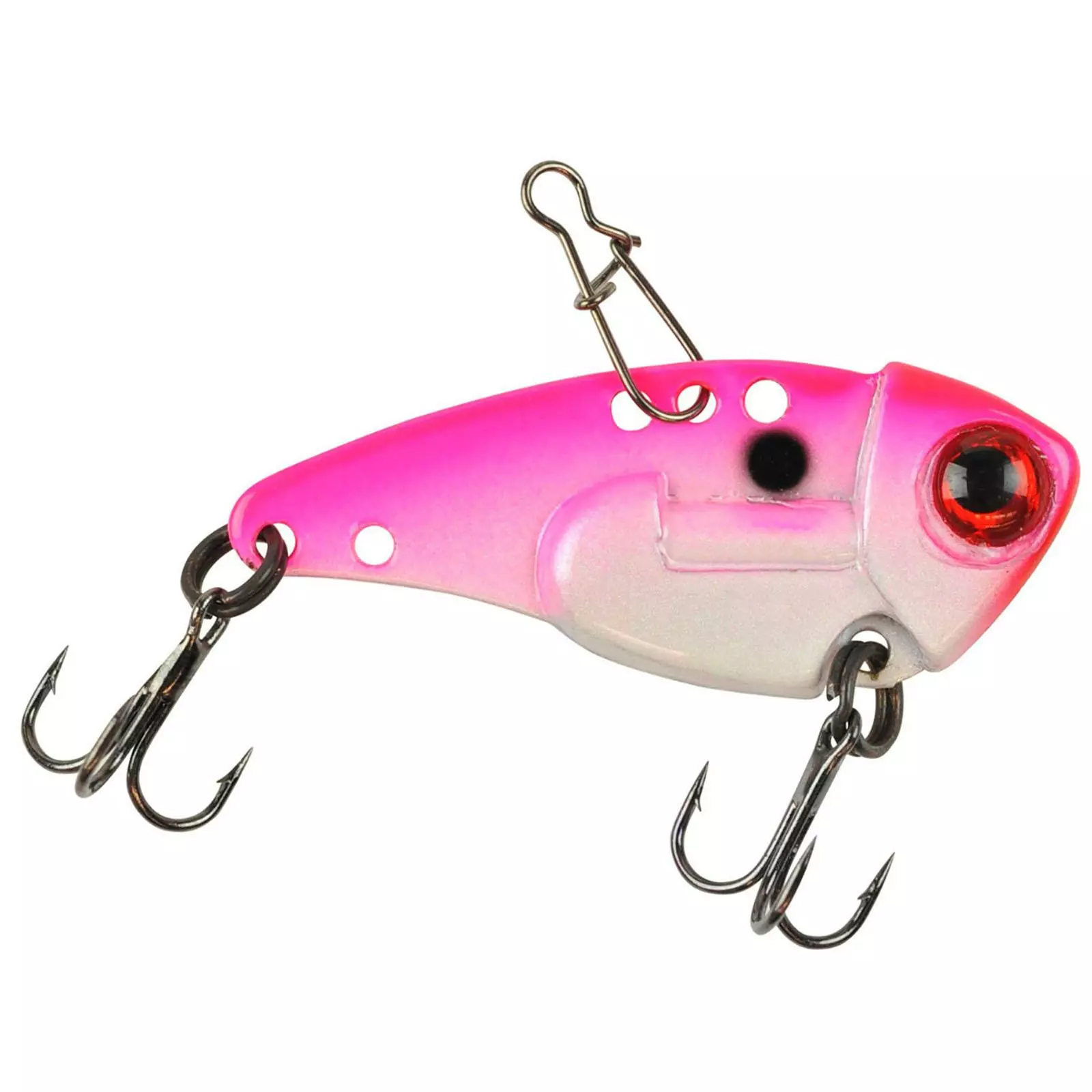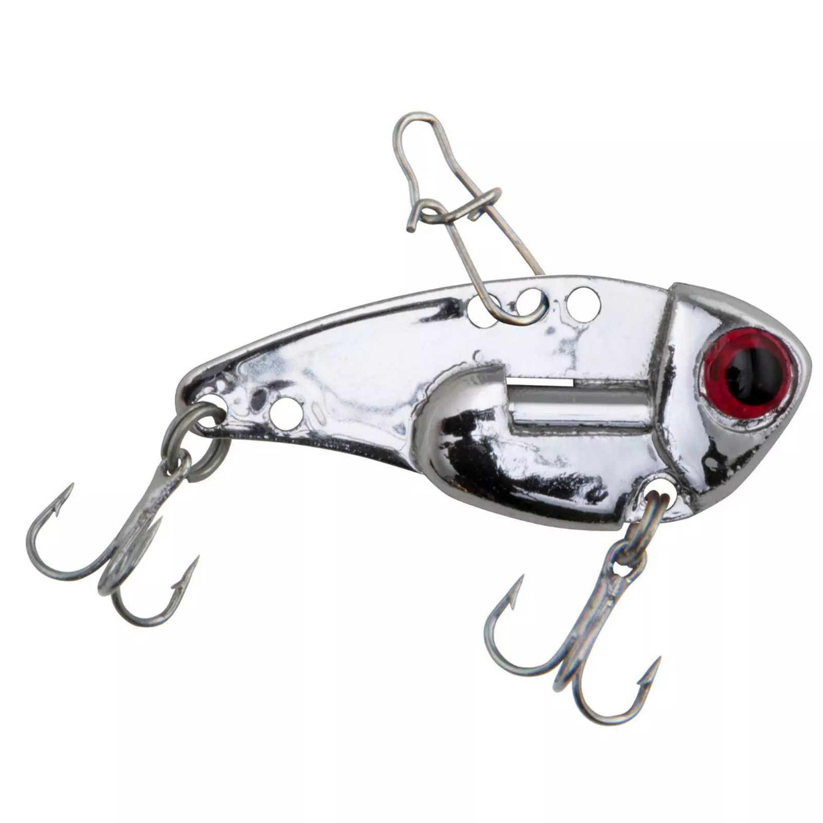 The Johnson Thinfisher Blade Bait offers a natural vibrating action on the retrieve and an irresistible built-in sonic chamber. This bait is great for vertical jigging, which allows it to swim back down through the strike zone. Thinfisher Blade Bait comes equipped with black nickel hooks and a snap.