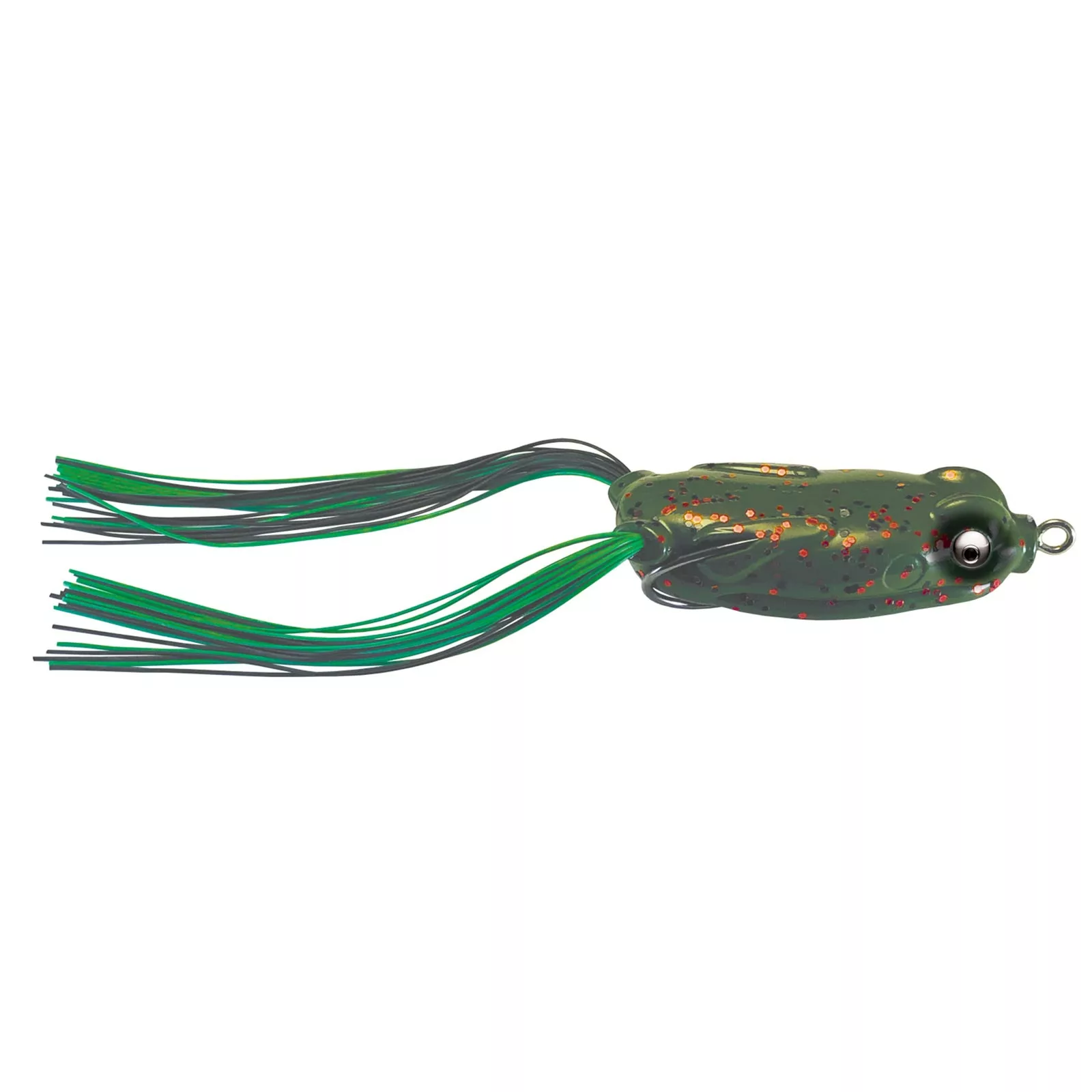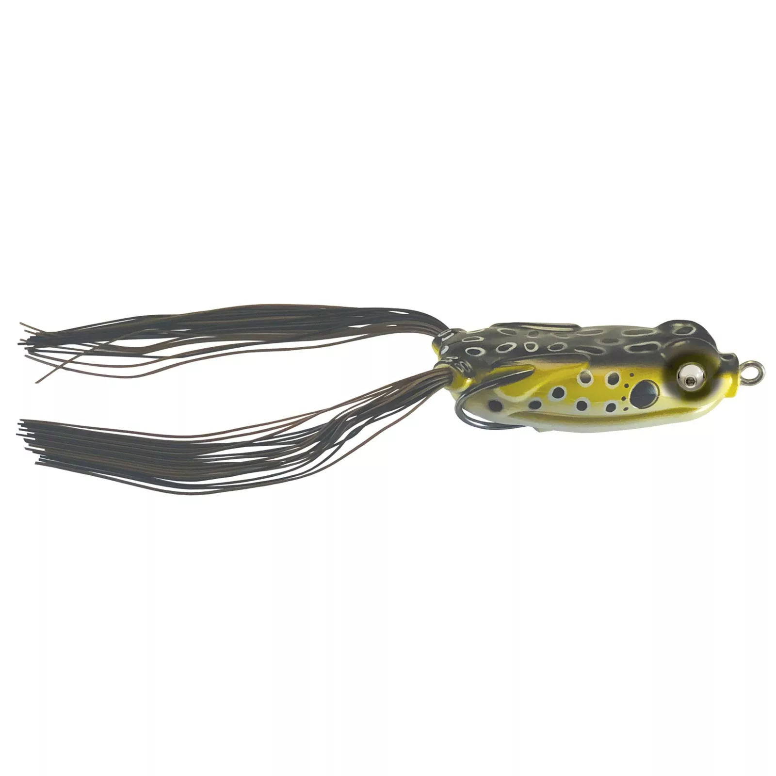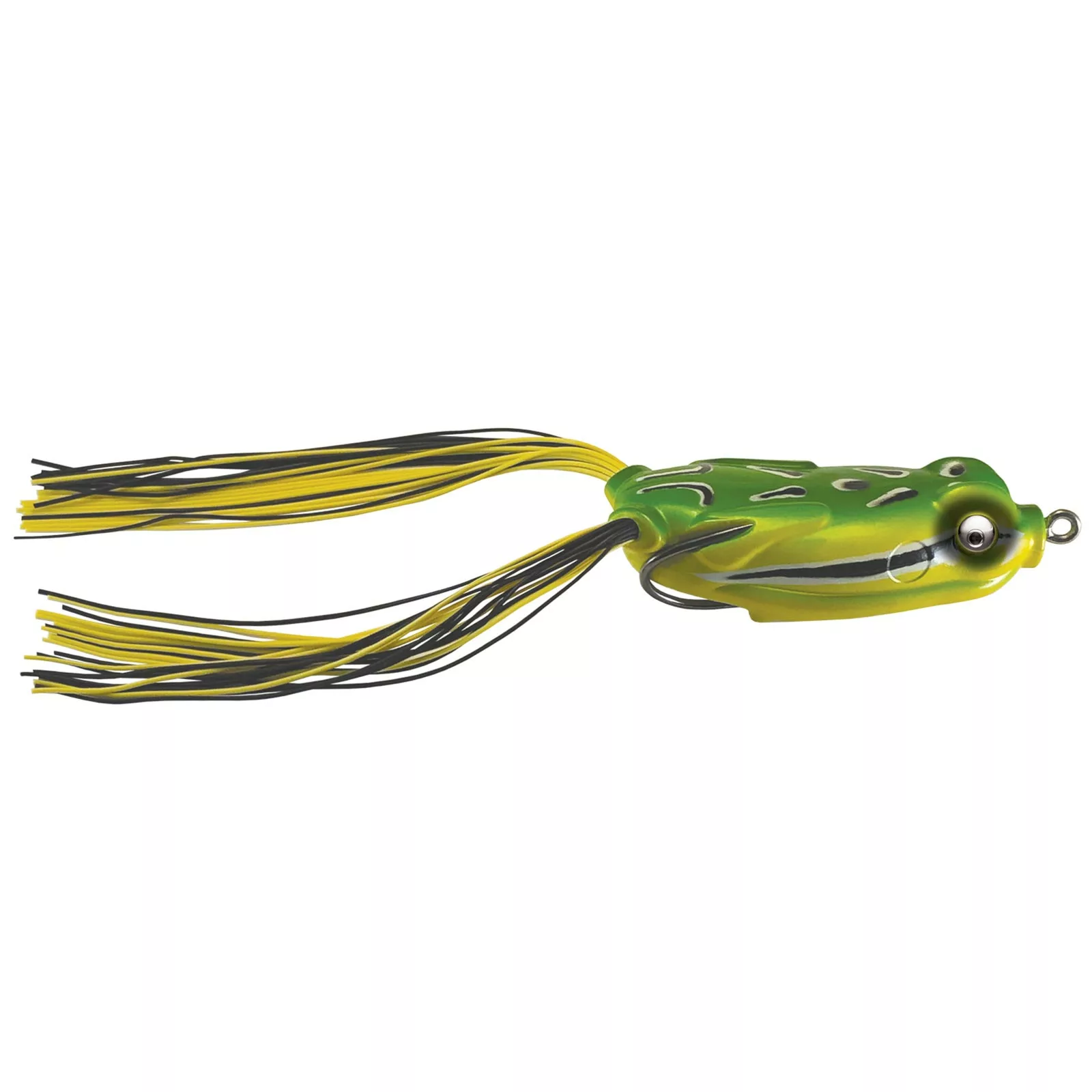 Kalin’s Rattlin’ Google Eye Lily Stalker Frog Bait – says just about it all, doesn’t it? The frog lure’s hollow body reverberates in the water from the big glass rattle of an eyeball as you retrieve it. There’s an attention-getter! Recessed hook pockets allow you to pull Rattlin’ Lily Stalker frog lures through weedy areas, and the hooks themselves utilize an Open Gap System where the hook points angle slightly upward in an effort to keep bass on the line. To further make the Google Eye Lily Stalker irresistible, Kalin designed the frog lure with a three-keel underbelly that makes it easier to “walk-the-frog” or retrieve with a side-to-side motion. The lure is available in realistic amphibian colors and one certainly will soon be attached to a bass once you order up one or more of a Kalin’s Rattlin’ Google Eye Lily Stalker Frog Bait !