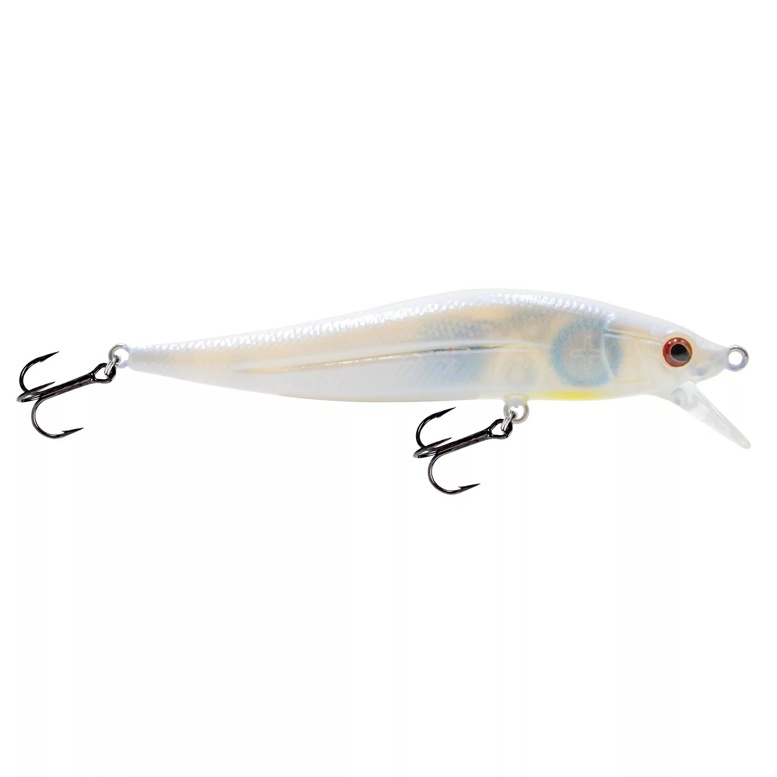 A Livingston Lures Jerkmaster Jr Tournament Series Jerkbait on your line is more than a lure that imitates a dying shad – an embedded EBS smart chip transmits the sounds of a baitfish to gain the attention of roaming predators from up to twice the distance as a conventional jerkbait! The Jerkmaster Jr., at slightly more than 3.5 inches long, is a shallow diver made to drop slowly and reside at a depth of two to four feet where you enact the darting and slashing motions of a shad in peril. First brought in by the noise it senses, your target fish then sees the jerking action and moves in for the strike. The hunter becomes the hunted when you outwit it with your Livingston Lures Jerkmaster Jr. Jerkbait!