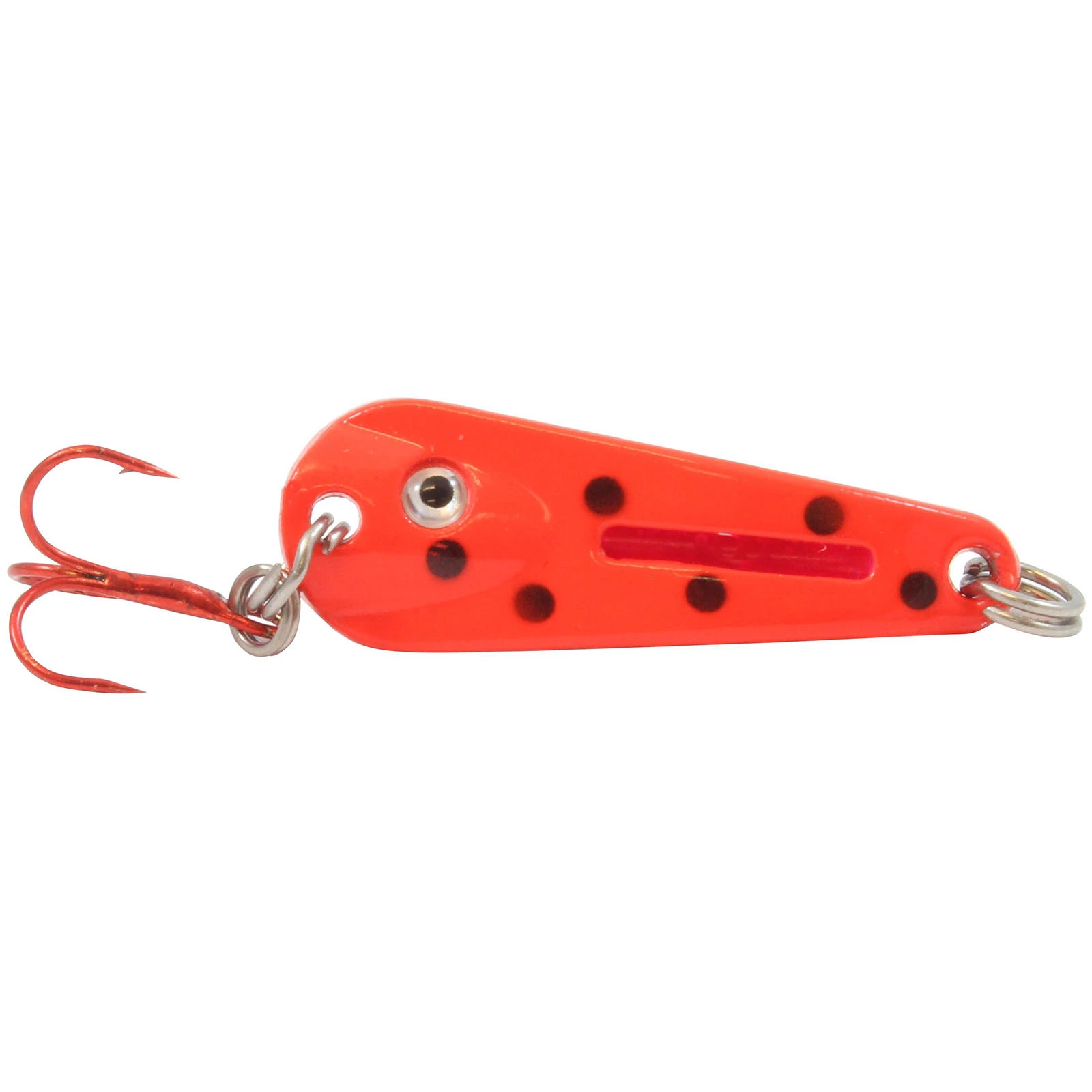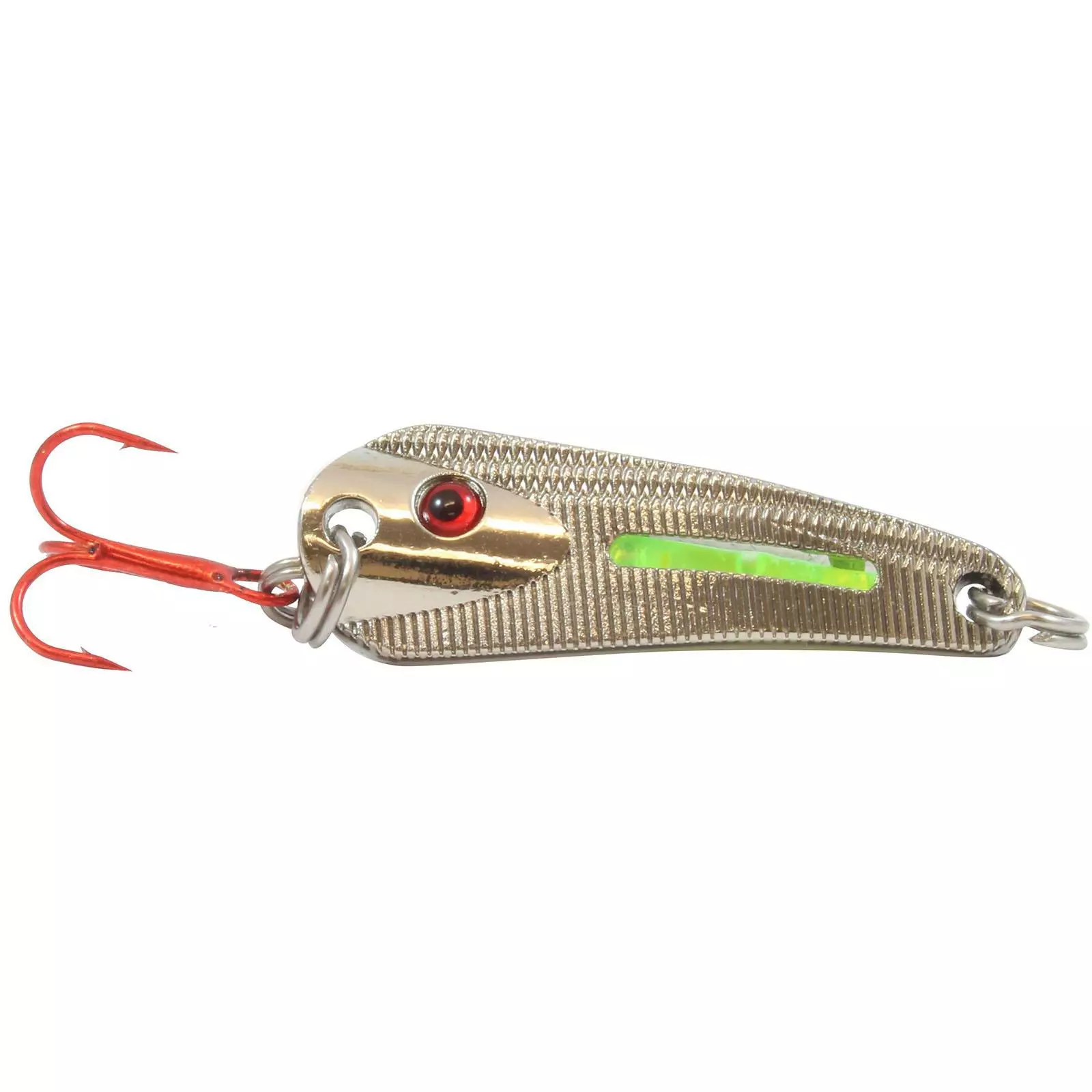 The Northland UV Glo-Shot Spoon is a game-changer in fish attraction thanks to its highly visible Glo-Shot Sticks. The glow sticks attract fish in all conditions, luring gamefish from afar. The proprietary S-curve design produces an erratic underwater action while jigging, triggering more strikes. The spoons come in a variety of colors and finishes including metallics or UV glow. Additionally, you can change the color of the Glo-Shot sticks to match water conditions or mood of the fish.