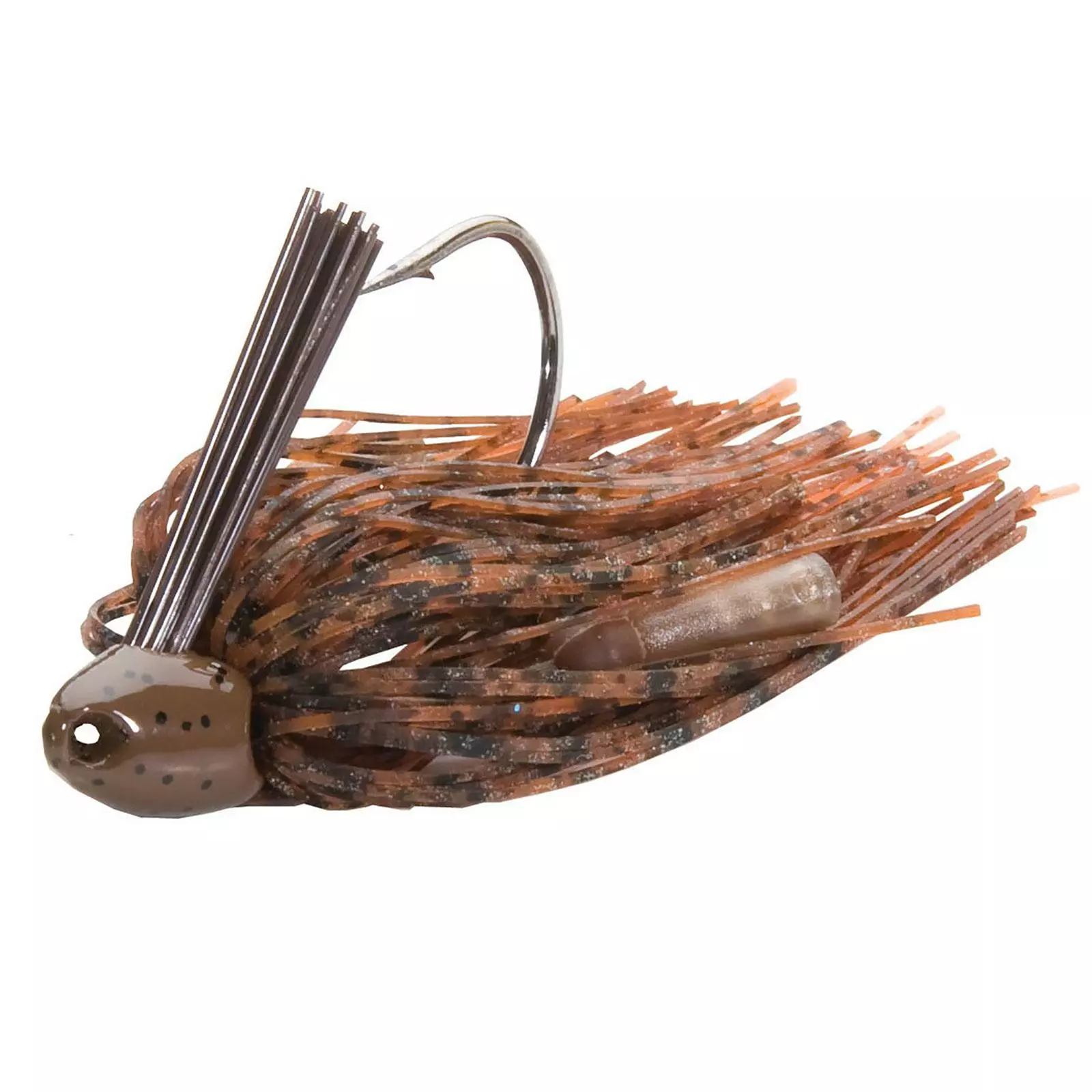 Flip a Northland Jungle Jig into thick grass/weed cover and feel how big pig bass and hard-fighting northern pike react to this swimmer! The Jungle Jig is a “totally weedless” bullet-headed crawfish flipping jig that swims through grasses with rattle-thumping ease to attract these voracious freshwater gamefish. Complete with a weed guard, skirting, and a soft-plastic trailer tail, feel free to flip and pitch the jig head lure into dense weed pockets, lily pads, and other thick covers. The Jungle Jig works best when paired with a heavy flipping stick on a 30-50 lb. braided line. Also, try skipping the lure below overhanging trees and brush and those docks where bass linger. After catching a few hefty fish, you just may fall in love with a Northland Jungle Jig!