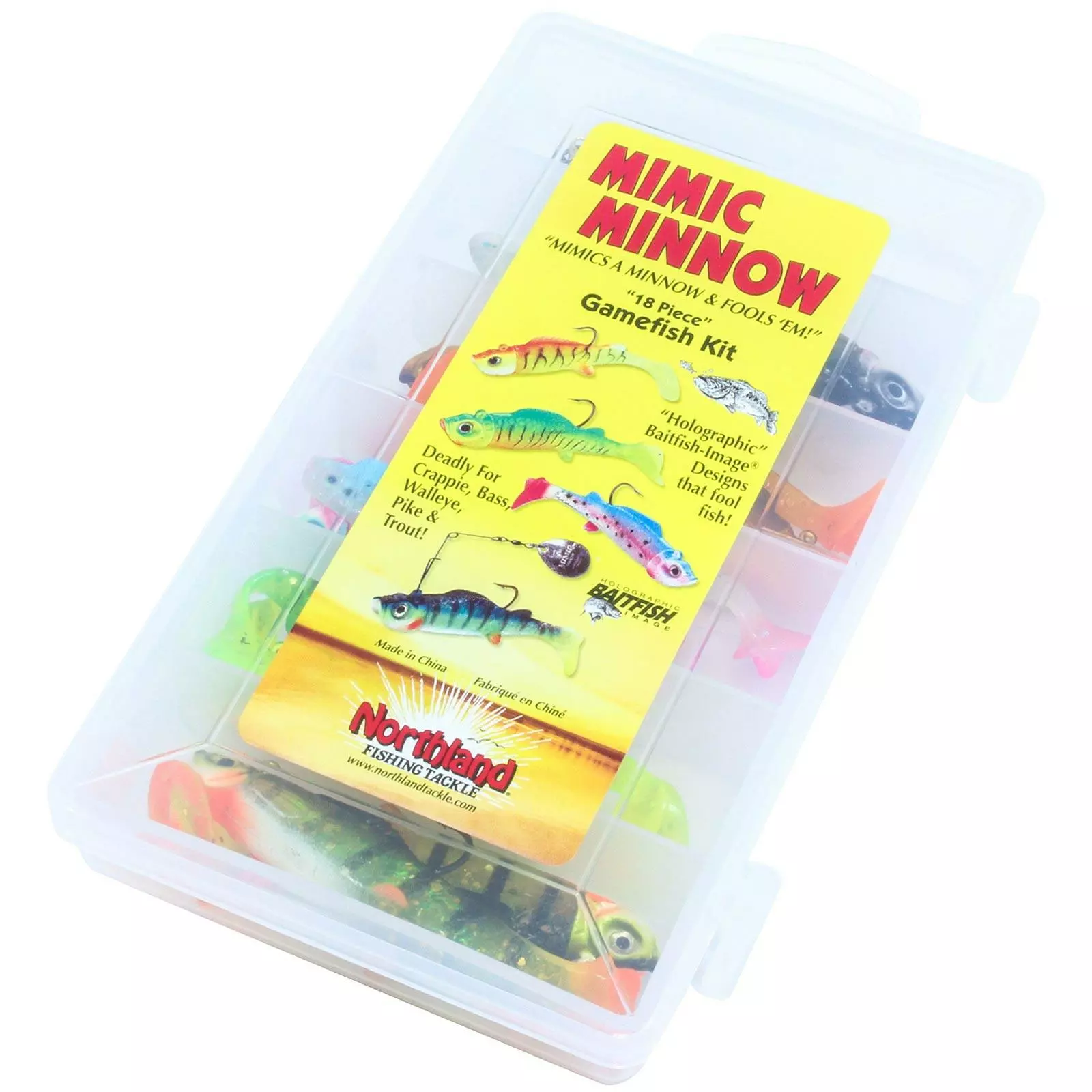 The Northland Mimic Minnow Gamefish Kit comes with 18 Mimic Minnow Gamefish jigs, making it the perfect kit to restock your tackle box! The jigs have a lifelike design and color patterns with a holographic body to help entice strikes. Northland outfitted the Mimic Minnows with a weedless bladed wire that flashes and flutters through weeds, brush, and timber. Refill your tackle box with the Northland Mimic Minnow Gamefish Kit!