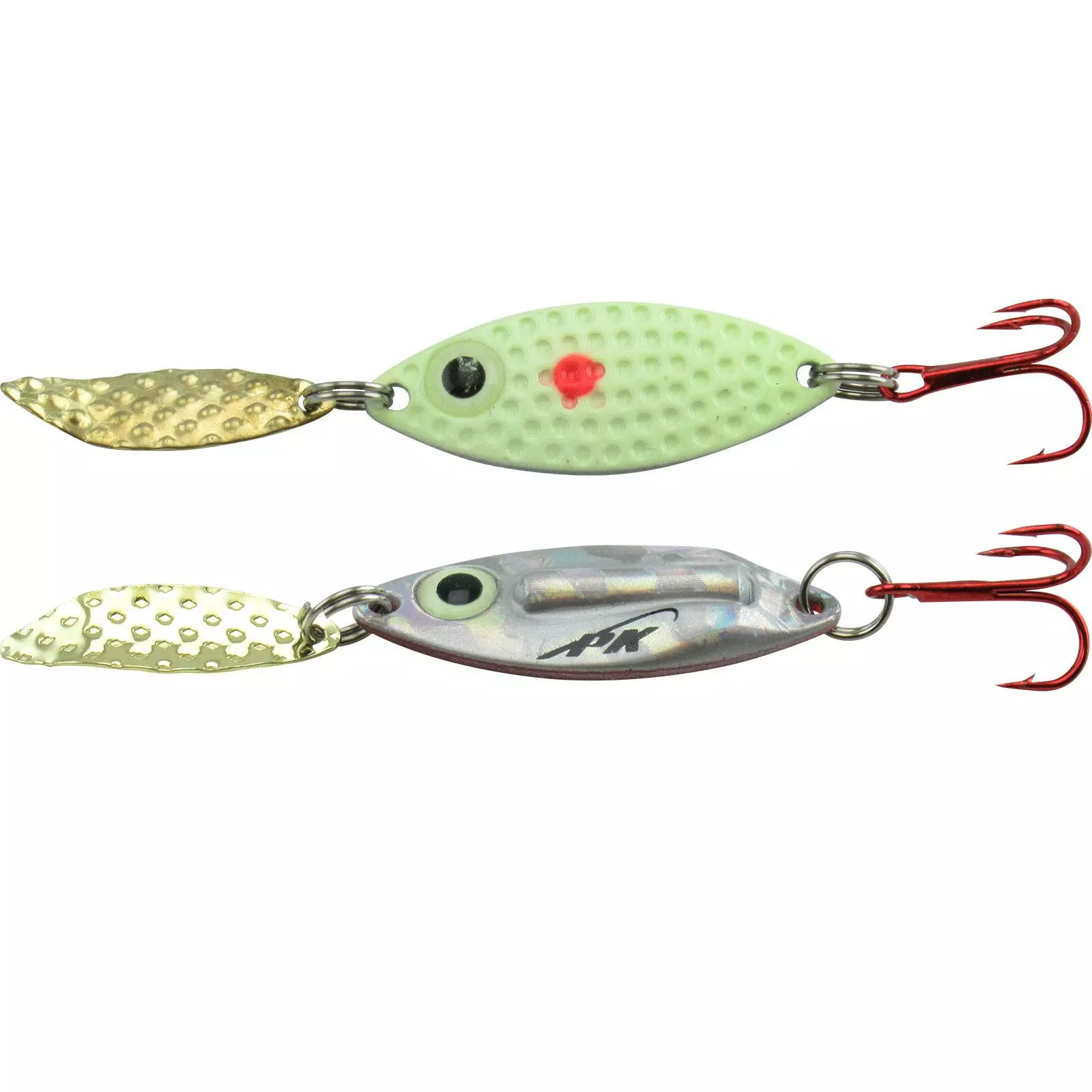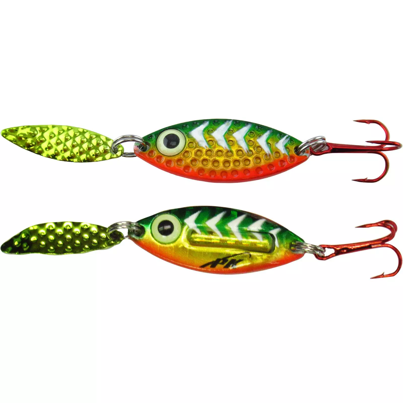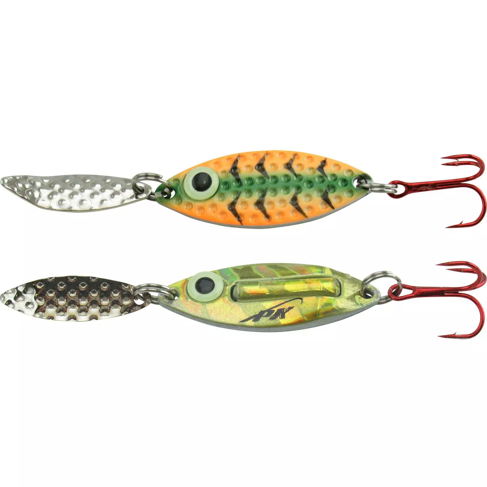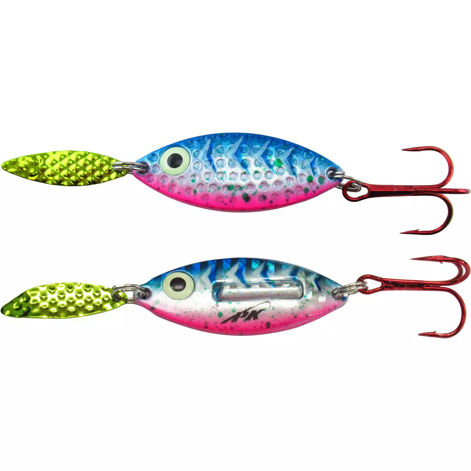 Change it up with the highly versatile PK Lures Rattling Spoon! This rattle spoon features a new brass rattle chamber that is over-sized and creates an enticing sound that will trigger lightning-fast strikes! You can use it to entice sluggish fish beneath the ice or run it for an aggressive chase in open water, giving the rattle spoon incredibly versatility! Designed in flashy, light-catching colors, the PK Rattle Spoon is excellent in all weather conditions. This is one of the most sought after fishing spoons on the market today! Give yourself an edge this ice season with the PK Lures Rattling Spoon!