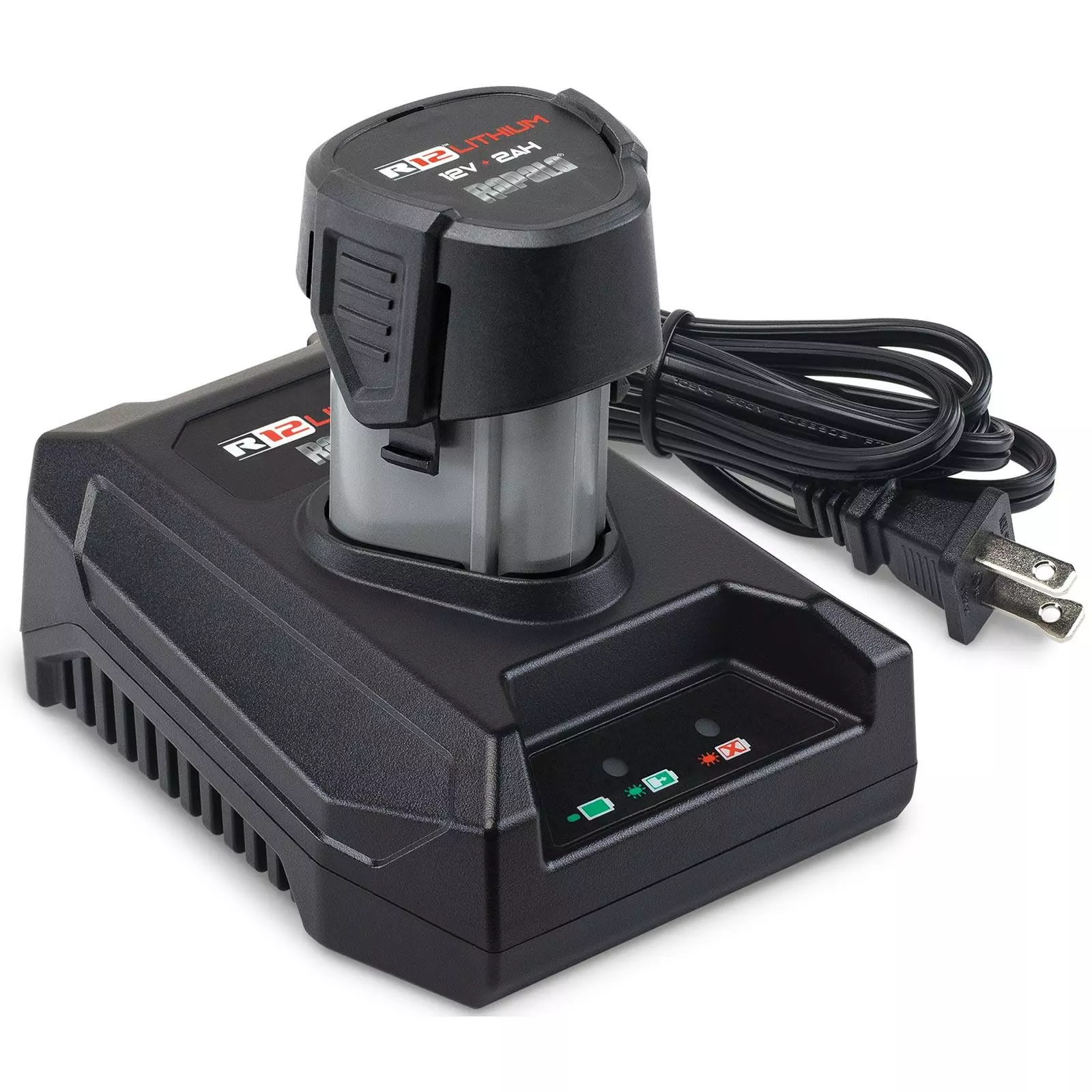 The Rapala R12 Lithium Charging Base is only for use with the Rapala R12 Heavy Duty Fillet Knife Kit (sold separately by FishUSA under Item No. 184340) and to charge the Rapala R12 Lithium 2Ah Battery (sold separately). The charging time for the two-amp battery is approximately one hour which you can monitor with the status light indicator. A two-year manufacturer warranty is included with the Rapala R12 Lithium Charging Base.