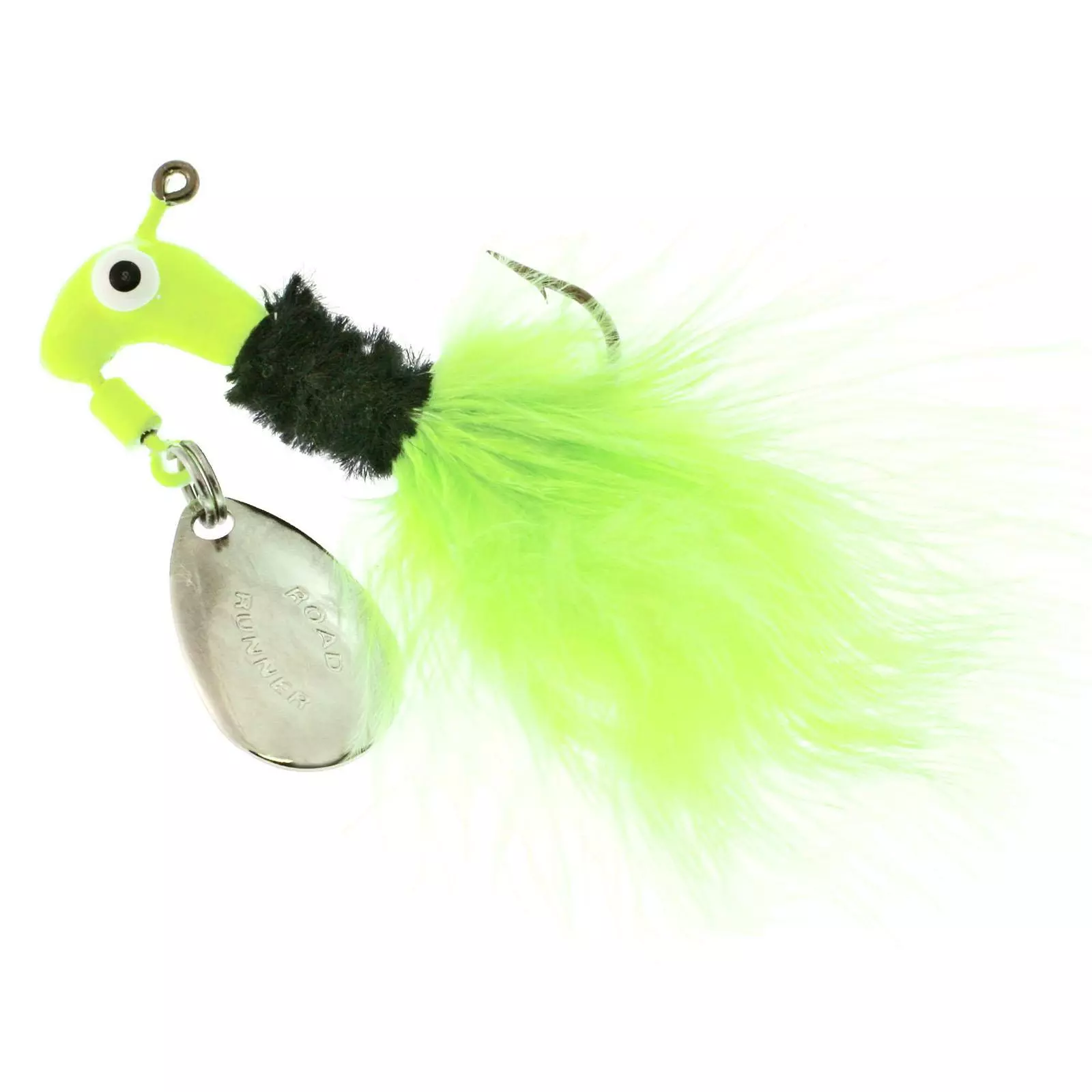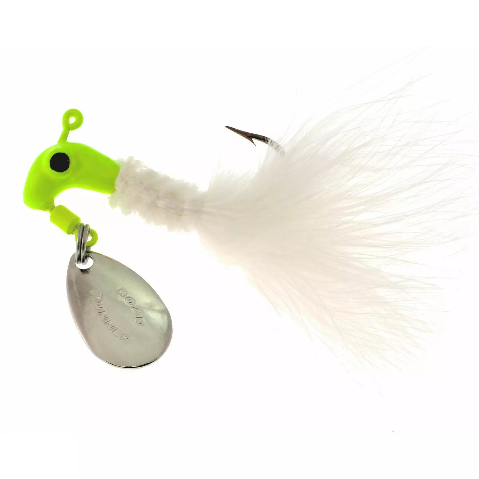 Road Runner Original Marabou Jigs are deadly on bass, walleye, crappie, and other panfish. These jigs are constructed with a solid, painted jig head, a fuzzy grub body, and a spinner blade. Original Marabou Jigs send out little vibrations that are sure to produce fish action.