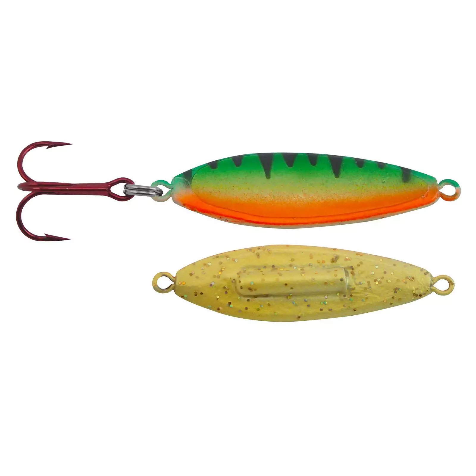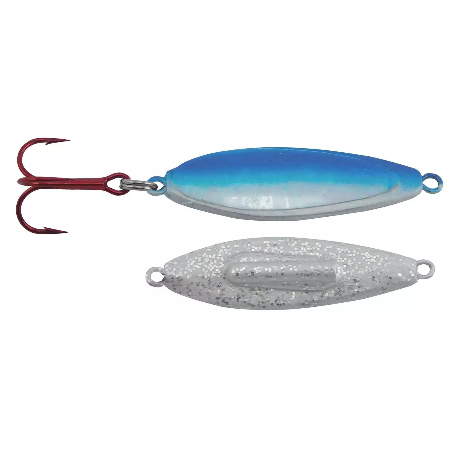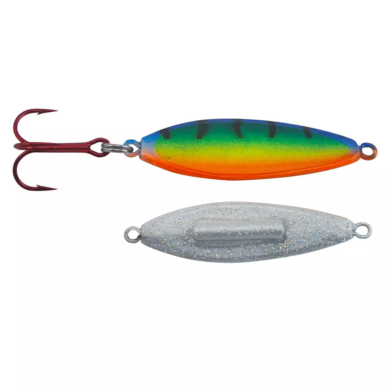 Silver Streak Rattle Streak Spoons are designed with flat bodies and fitted with rattle chambers. These spoons create sounds and ripples that attract fish from distances and entice them to strike. Silver Streak Rattle Streak Spoons are excellent for jigging through the ice and great for casting in open water, too. With blood-red hooks and brightly-painted, high-quality finishes, these spoons are a threat to all perch, walleye, trout, salmon, bass, and panfish.