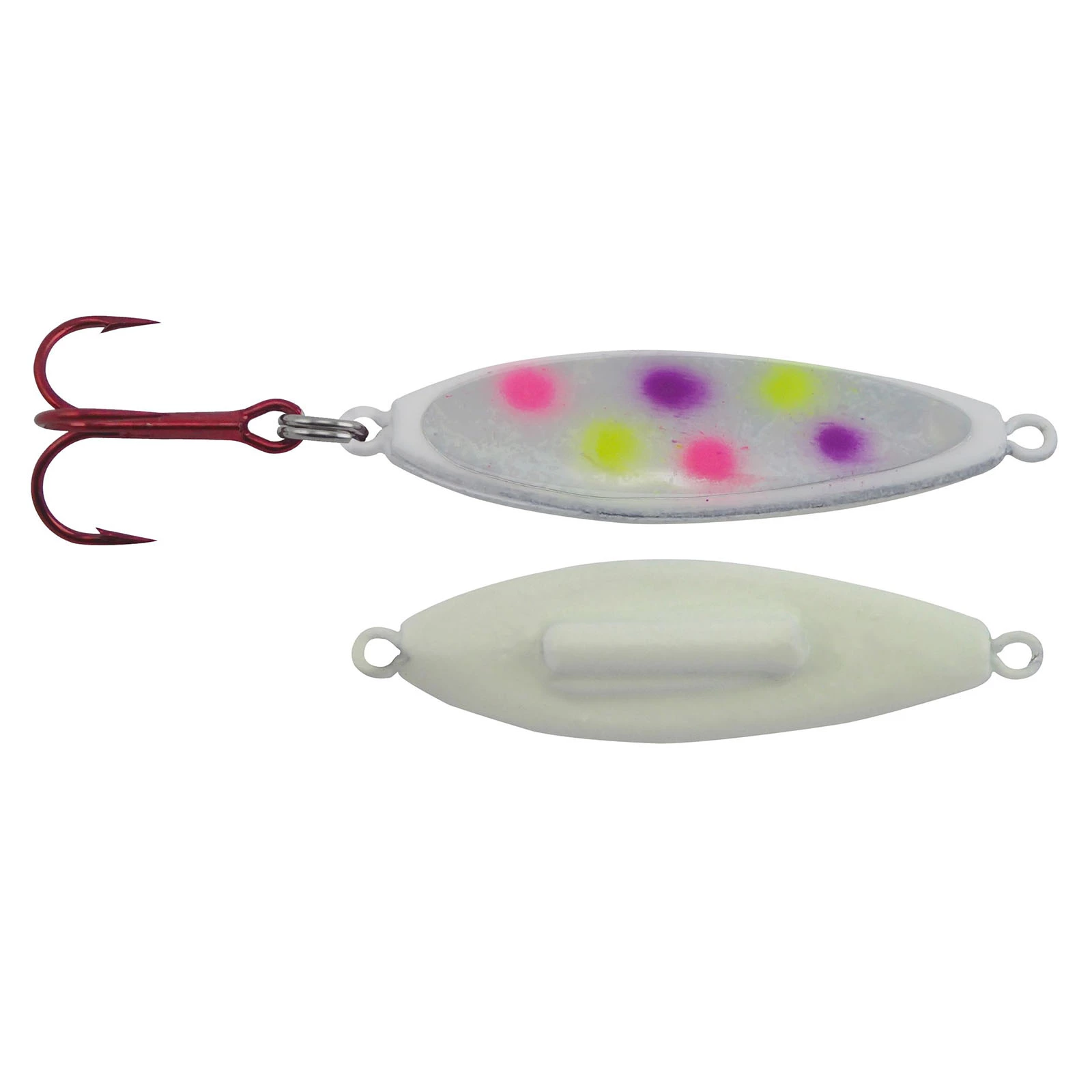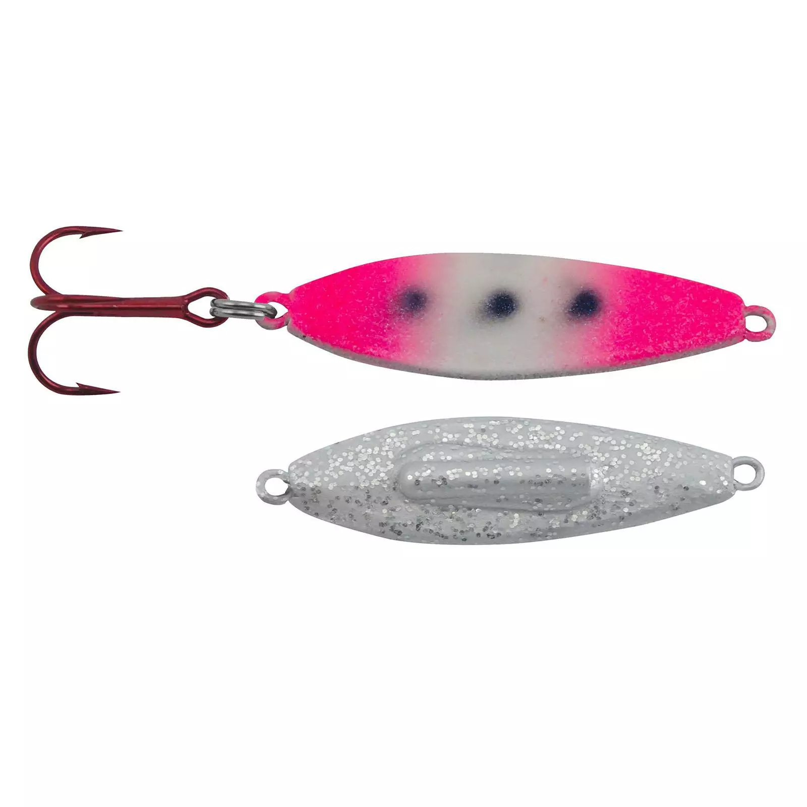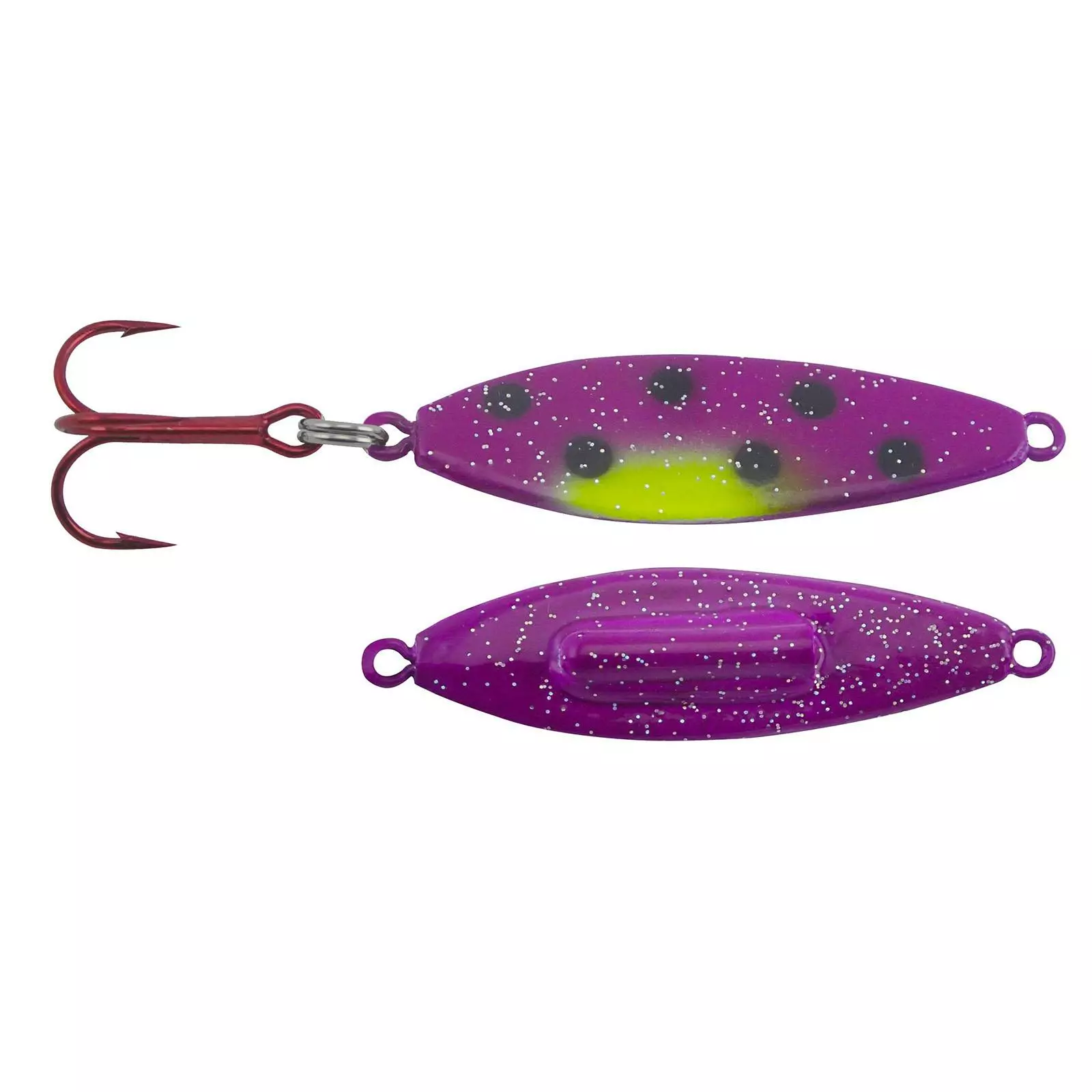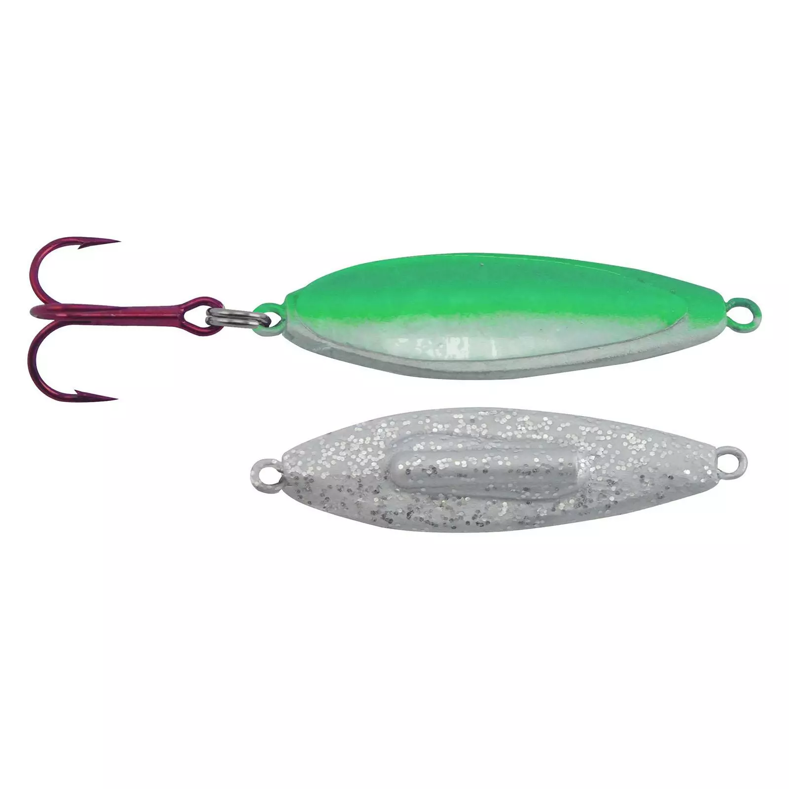 Silver Streak Rattle Streak Spoons are designed with flat bodies and fitted with rattle chambers. These spoons create sounds and ripples that attract fish from distances and entice them to strike. Silver Streak Rattle Streak Spoons are excellent for jigging through the ice and great for casting in open water, too. With blood-red hooks and brightly-painted, high-quality finishes, these spoons are a threat to all perch, walleye, trout, salmon, bass, and panfish.