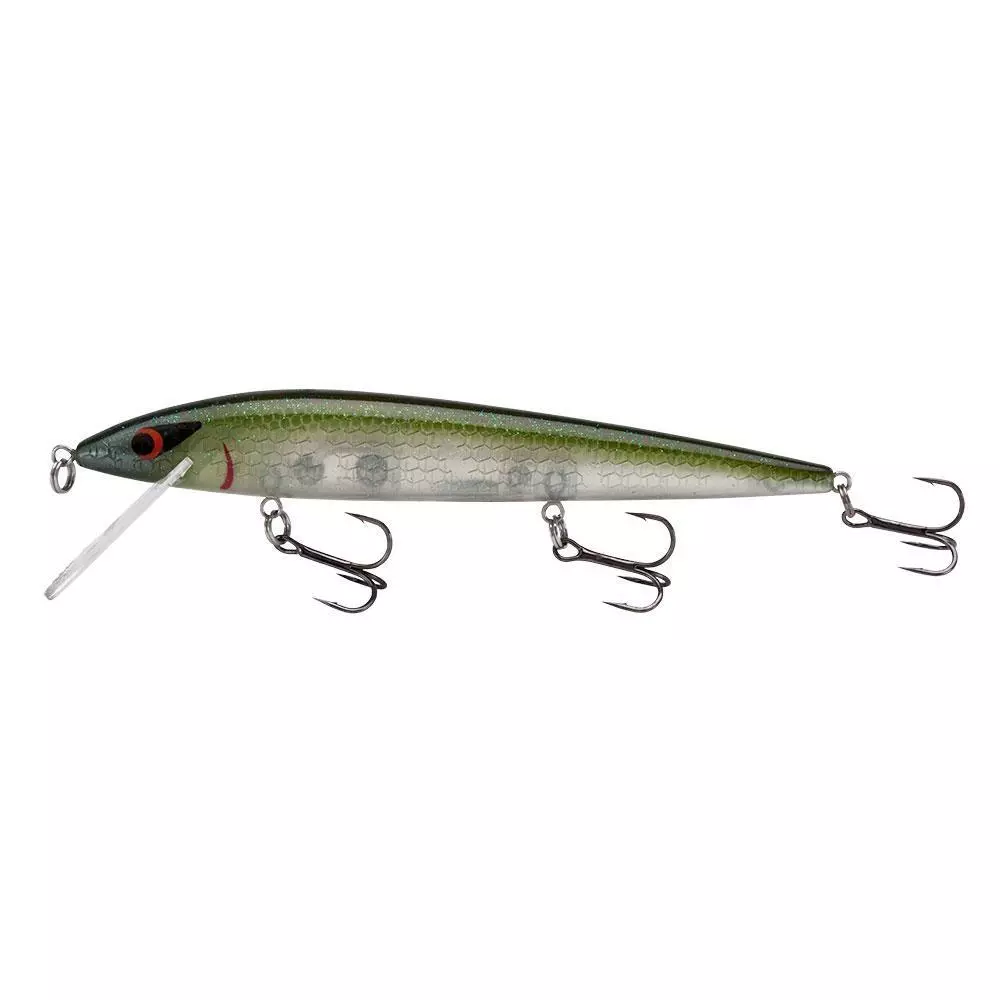 Smithwick Suspending Elite 8 Rogues feature a loud internal rattle that easily gets the attention of large hungry predator fish. These lures have an erratic, side-to-side darting action when twitched or jerked. Color patterns are available for both clear and darker water conditions. The translucent models are designed for clearer conditions while the chrome and gold models are made for murky conditions.