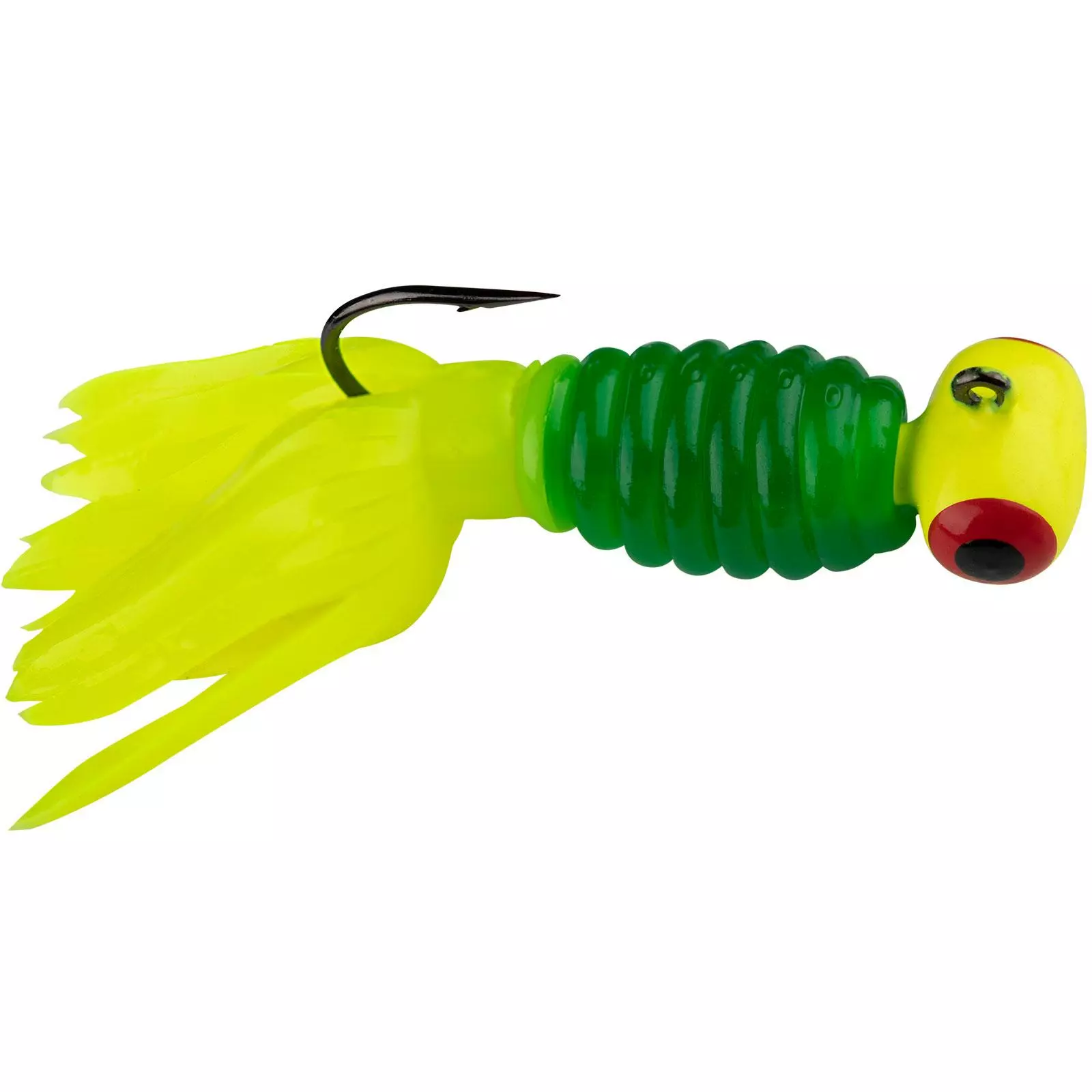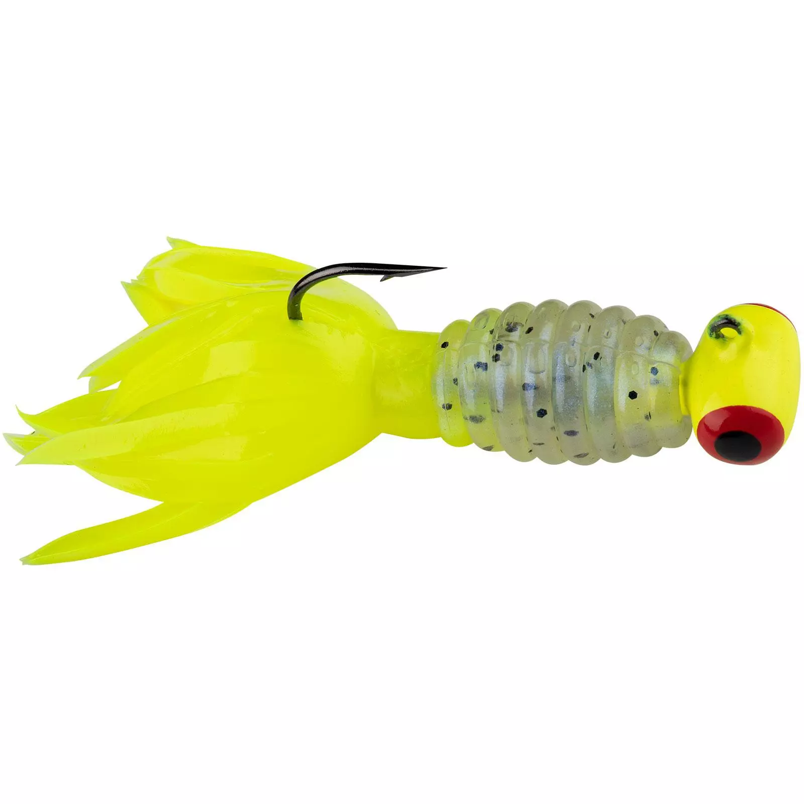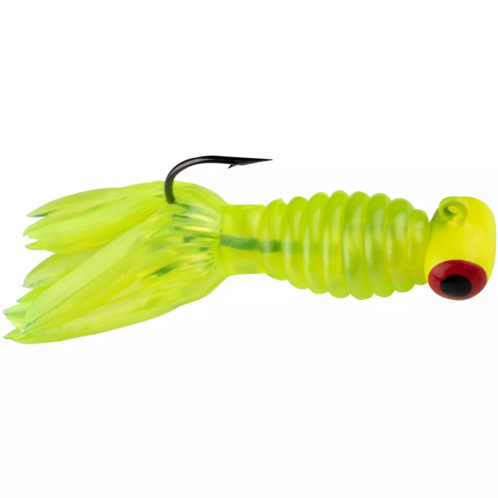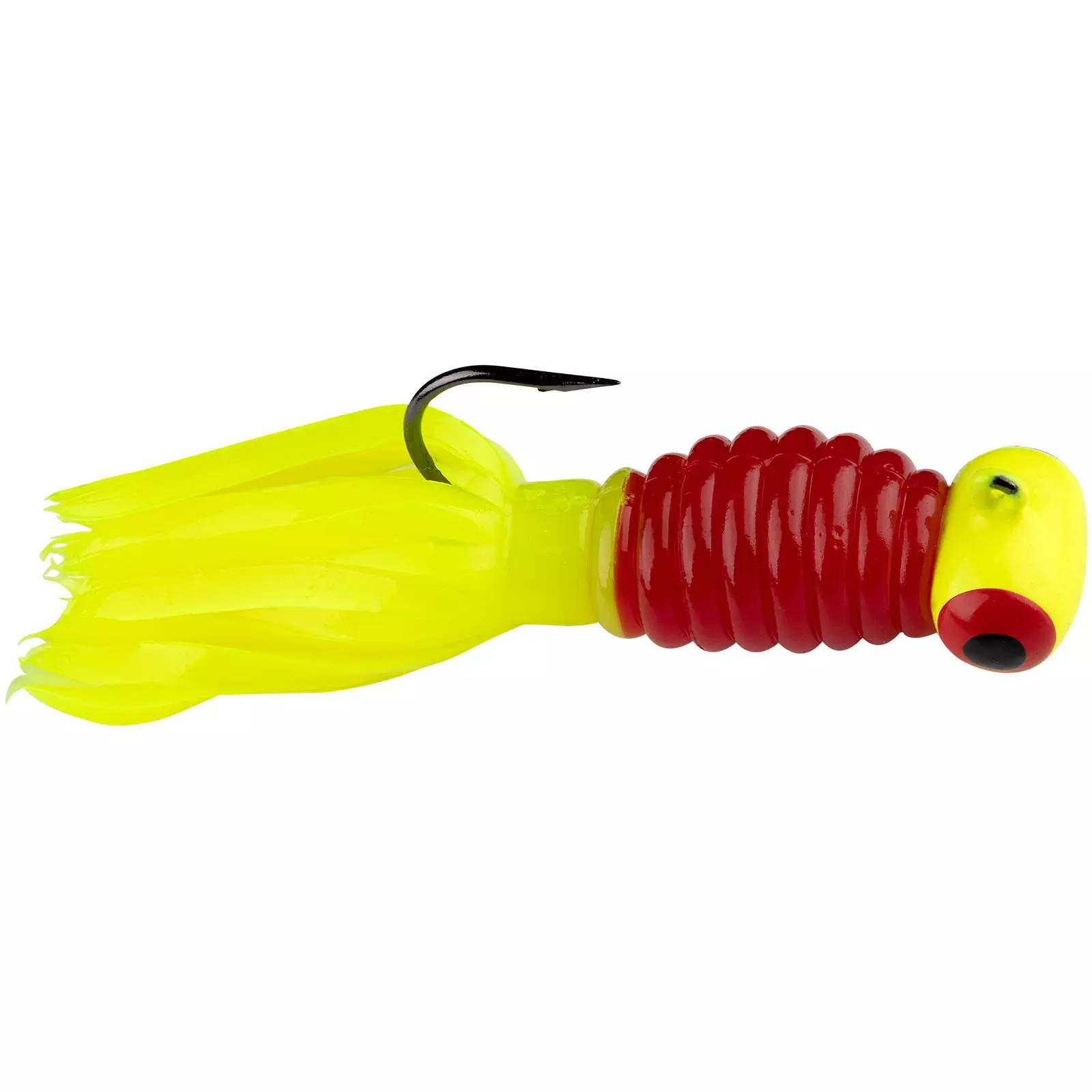 Strike King Mr. Crappie Sausage Heads utilize a sausage-shaped head to prevent the jig from rolling to the side, providing a perfect hook set. These jigs are further improved with the addition of a Crappie Thunder body. The body is constructed of durable plastic with a tentacle tail that undulates with very little movement and offers a swimming motion when jigged. Strike King Sausage Heads come in bright colors that are known to catch fish.