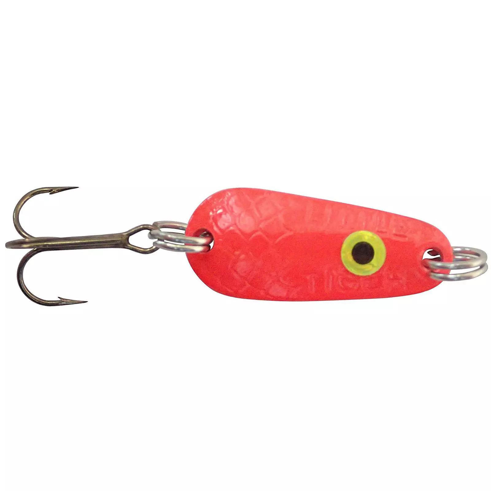Thomas Little Tiger Spoons are little wiggler type spoons that are great baitfish imitators. These lures feature jewelry quality two-tone coloration or bright painted finishes and an engraved half-scale pattern. This combination creates a highly reflective flash that triggers all types of game fish to strike, especially trout. Little Tiger Spoons work best when used with a slow stop and go retrieve, with occasional sharp twitches to bring out the hard strikes. These lures are also great for ice jigging.