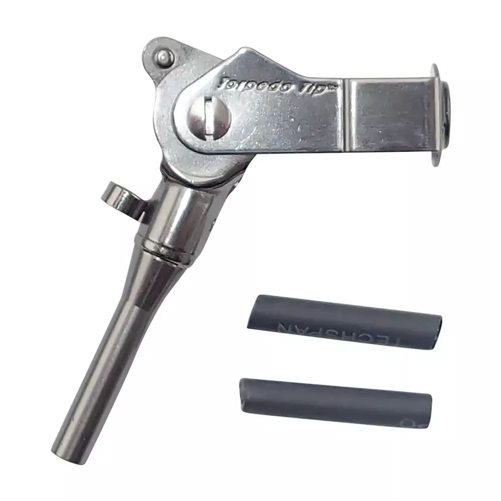 Line breakage while trolling will be a thing of the past when you use the Torpedo Roller Guide Rod Tip. Designed for wire, copper, and lead core fishing lines, the roller tip rotates to avoid line breakage. Installation is easy. First, remove your old rod tip and clean up the lacquer. If the roller guide fits into the tip of your rod, use epoxy or hot glue to attach it, making sure it is lined up with the guides. If the roller guide is too large, you can use the included shrink tubing to secure the guide to your rod. Become a Master Troller when your rods are equipped with the Torpedo Roller Guide Rod Tip.