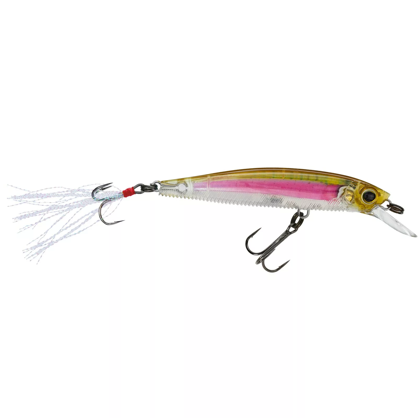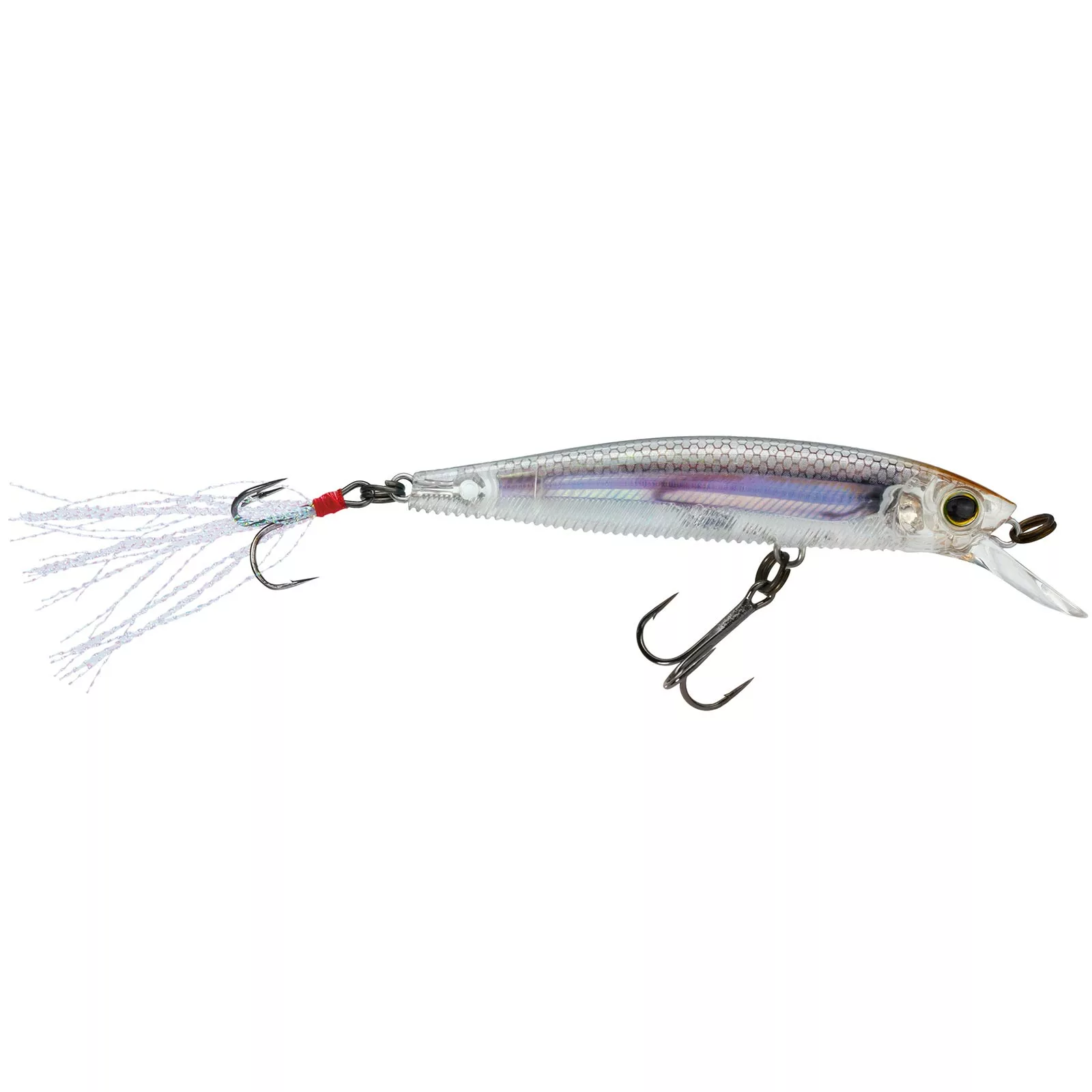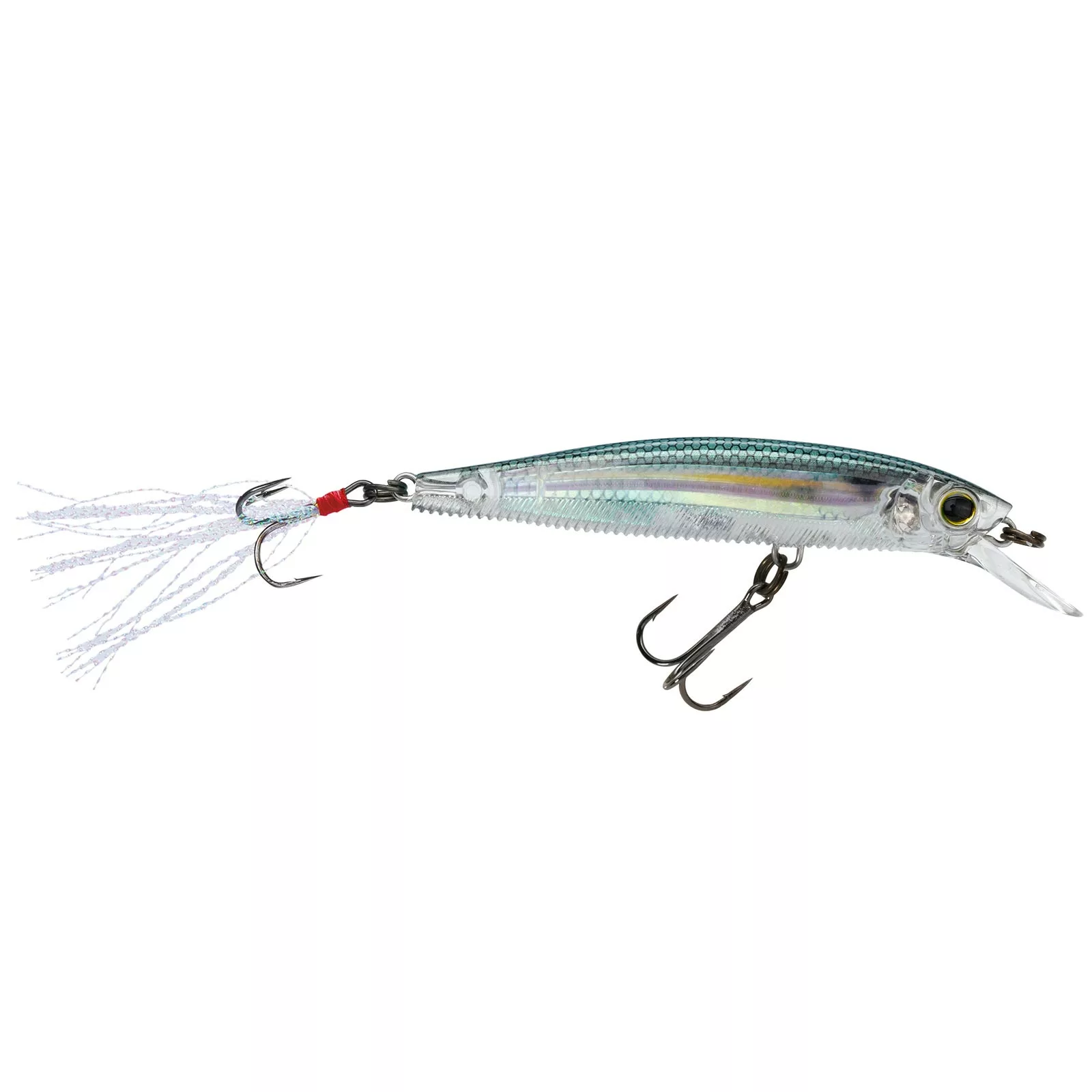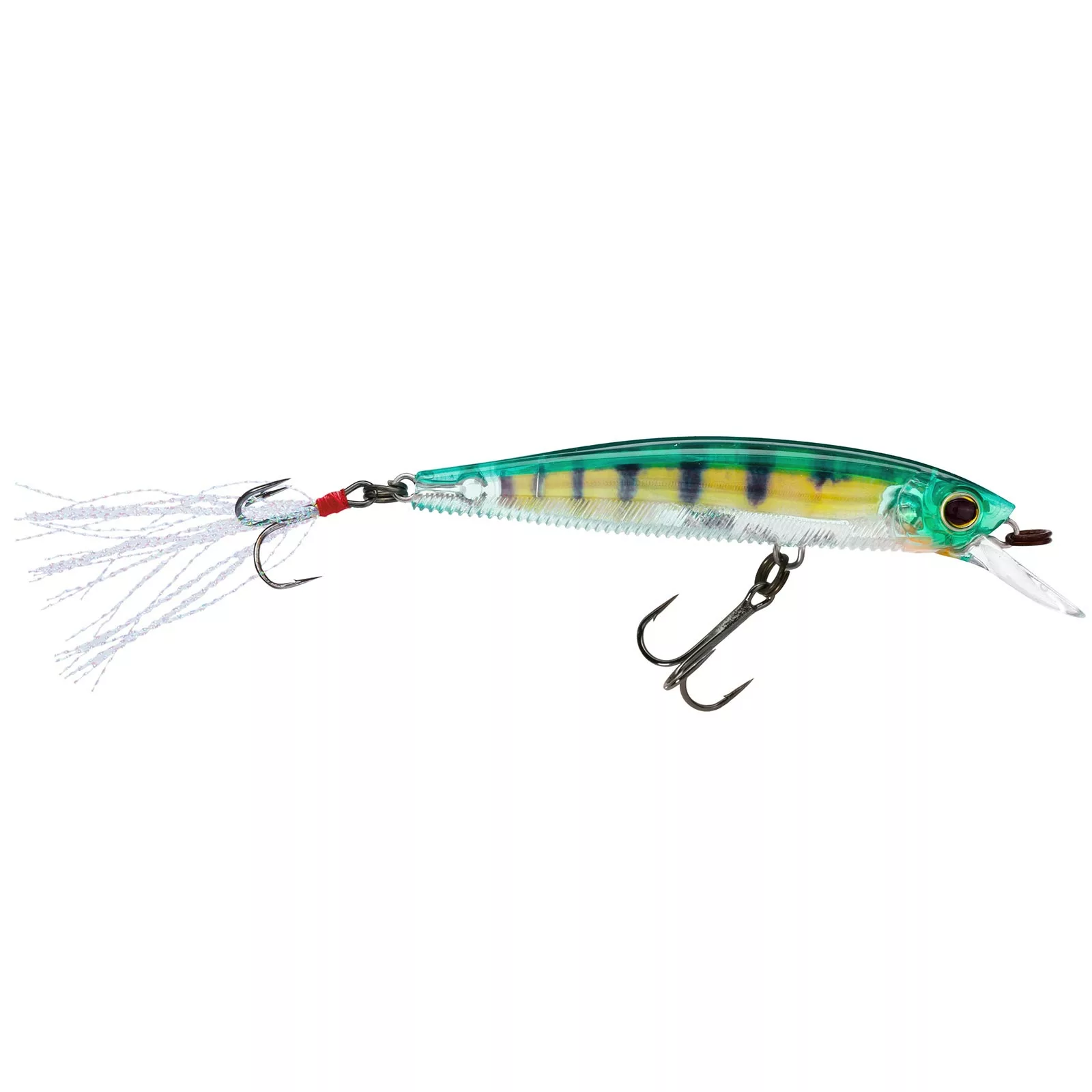 The Yo-Zuri 3DB Jerkbait 90 is 3 1/2 inches of vibrant bass-catching motion and flash! The flat-sided minnow-shaped 3DB Jerkbait 90 incorporates Wave Motion Technology on the underside, ribbed to create a disturbance as you retrieve in the “stop-and-go” or “jerk-pause-jerk” manner. The retrieve really opens up the flash as the Jerkbait 90 then shows off Yo-Zuri’s exclusive 3D Prism, or New Painted Finish, and carries a holographic mylar tinsel tail pulsating at the end. This suspension lure is shaped to replicate a minnow and is outfitted with two round bend black nickel hooks. Wake up the lake with the Yo-Zuri 3DB Jerkbait 90!